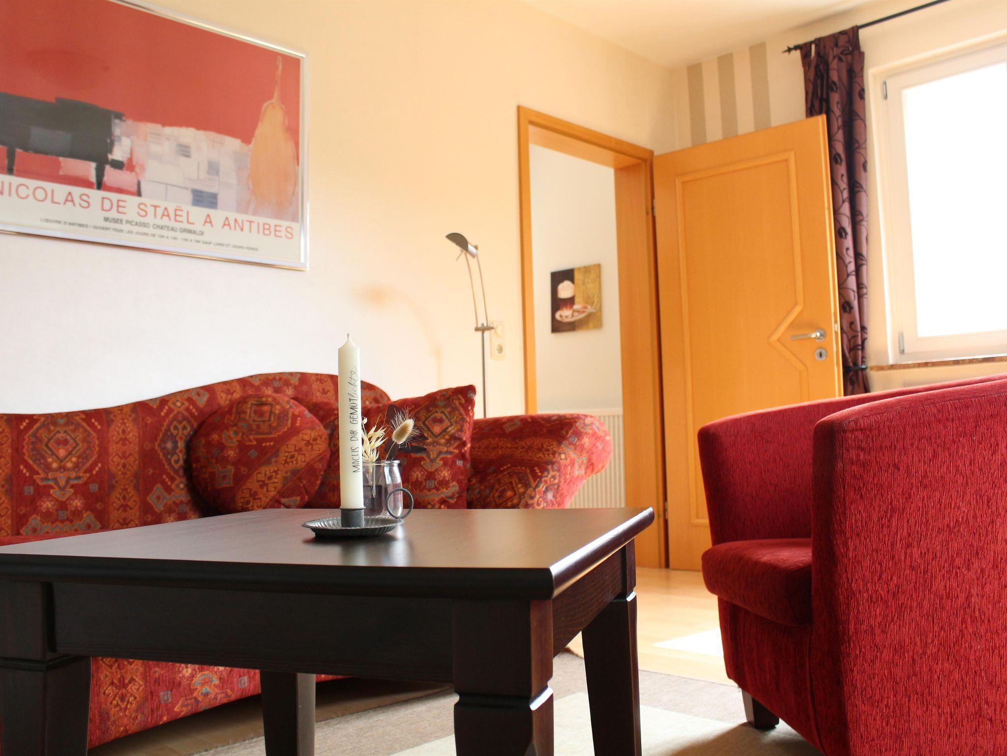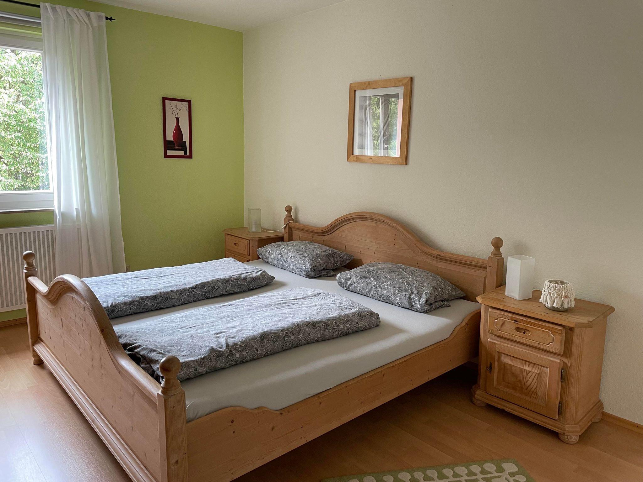 Die Ferienwohnung ist 55m² groß. Sie verfügt über ein Schlafzimmer mit Doppelbett (2x2m), ein Bad mit Dusche, ein Wohnzimmer mit Flachbildschirm und eine Küche mit Elektroherd und Backofen, einem Kühlschrank mit Gefrierteil. Kaffeemaschine, Toaster, Eierkocher und ein Wasserkocher sind vorhanden. In der Küche befindet sich ein ausziehbarer Tisch mit zwei Stühlen. Im Garten finden sie eine Sitzgelegenheit und zwei Relaxliegen. Es darf gegrillt werden. Ein Holzkohlegrill ist vorhanden. Der kostenfreie Parkplatz befindet sich vor dem Haus. Eine Unterstellmöglichkeit für Fahrräder, Skier und Schlitten ist vorhanden.