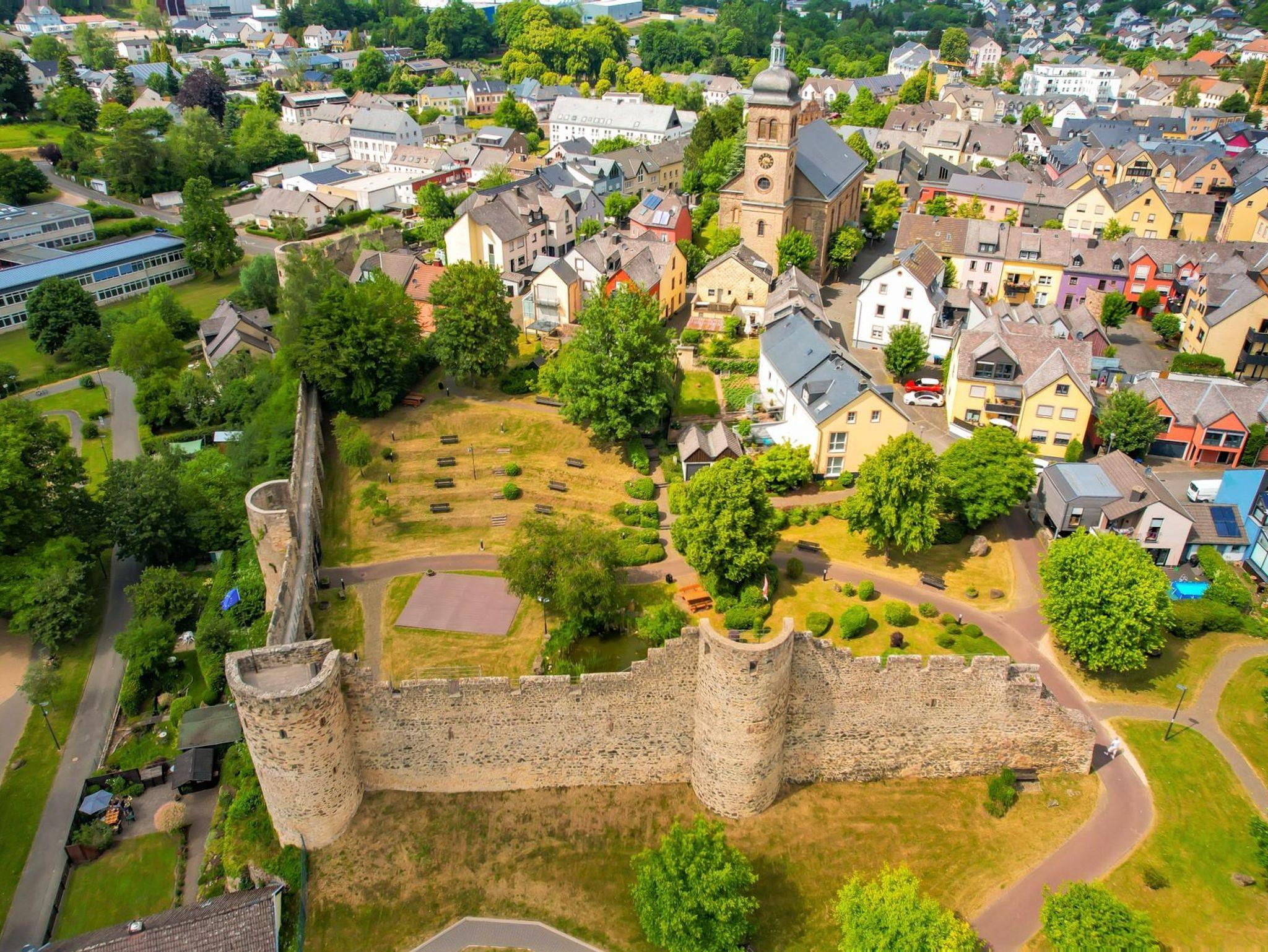 Sie ist 74 m² groß und verfügt über 2 Schlafzimmer, 1 Wohnzimmer, 1 Küche, 1 Bad. Das geräumigere Schlafzimmer verfügt über ein Doppelbett und einen 3.- türigen Kleiderschrank sowie einer Kofferablage. Hier, im Schlafzimmer, besteht auch die räumliche Möglichkeit, das Kinder- Reisebettchen aufzustellen. Das kleinere Schlafzimmer ist ausgestattet mit einem ausziehbaren Etagenbett für Erwachsene und einem Bürotisch+ Stuhl. Beide Zimmer sind vom Gästeflur begehbar. Das Wohnzimmer lädt Sie, mit seiner geräumigen, ausziehbaren Couch ein, einfach mal die Beine hochzulegen und den Abend bei guter Musik oder dem TV ausklingen zu lassen. Schauen Sie aus den Wohnzimmerfenstern, bietet sich Ihnen ein hervorragender Blick auf den direkt angrenzenden Viehmarkt, an dem jeden Donnerstag ein reges Treiben (Markttag) herrscht. Außerdem befindet sich auf der gegenüberliegenden Straßenseite die Eifel- Alm, eine Erlebnisgastronomie. Alle drei Zimmer sind zusätzlich mit Außenrollläden ausgestattet, die eine hervorragende Abdunkelung der Zimmer gewährleisten. Die geräumige Küche bietet einen fantastischen Ausblick auf die ehemalige Stadtmauer aus dem 13. Jhd. sowie einen Ausblick in das Bolsdorfer Tälchen, mit seinem 1,5 km langen Barfußweg und seinen 22 Stationen sowie zahlreichen Wanderwege. Außerdem, aus dem Küchenfester geschaut, lassen sich traumhafte Sonnenuntergänge genießen. Der geräumige Küchentisch biete Platz für 6 Personen + einem Kinderstuhl, so dass hier bequem die gesamte Familie Platz hat um nach dem Abendessen Brettspiele zu spielen. Das Badezimmer ist ausgestattet mit einer Badewanne, WC, WB, Fön sowie einem Kindertöpfchen. Eine Wickelunterlage ist ebenso vorhanden, wie eine Babywanne und Kindergeschirr in doppelter Anzahl. Eine Waschmaschine und ein Trockner befinden sich im kleinen Hauswirtschaftsraum der Gästewohnung und sind unentgeltlich nutzbar. Die Touristenabgabe von 1,50€ pro Person ist ebenso enthalten wie 1 Flasche naturell pro Person und einer Flasche Wein bei Ankunft sowie die Energiekosten. Bettwäsche und ein großes + ein kleines Handtuch pro Person (zur Nutzung während des Aufenthaltes) werden mit € 15,- pro Person berechnet.