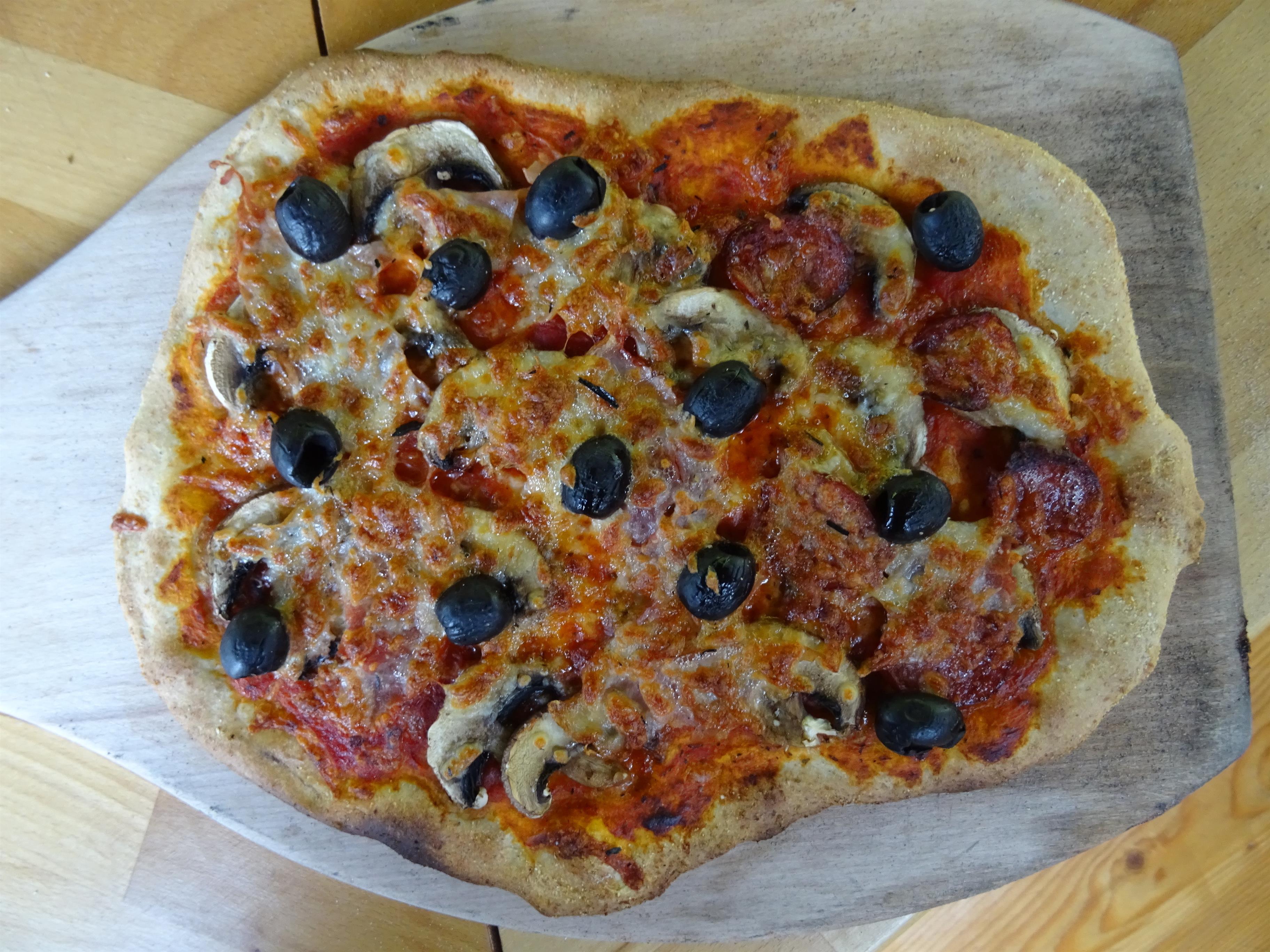 An unseren Backtag am Freitag backen wir Pizza, Brot, Kuchen und Fleisch im Holzbackofen.