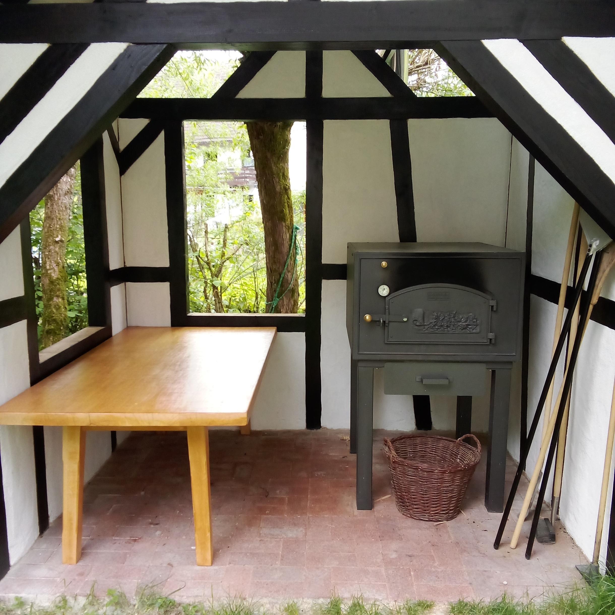 Sie wird dann in unseren Holzbackofen gebacken - und im Pavillon kann bei jeden Wetter gefeiert werden.