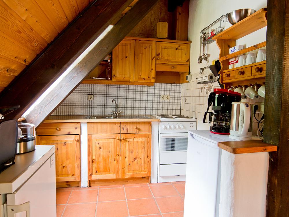 In der komplett ausgestatteten Wohnküche finden Sie außer einer Mikrowelle mit Grillfunktion selbstverständlich auch eine Spülmaschine. Wir haben die Küche mit den für das tägliche Leben notwendigen Kleinigkeiten bestückt - Sie finden hier neben Kaffeemaschine, Wasser- und Eierkocher z.B. auch Zucker, Salz, Kräutersalz, Pfeffer, Paprika, Essig/Öl, Kaffeefilter, Kaffee, Früchtetee, Küchenrolle, Spülmittel und Spülmaschinentabs.