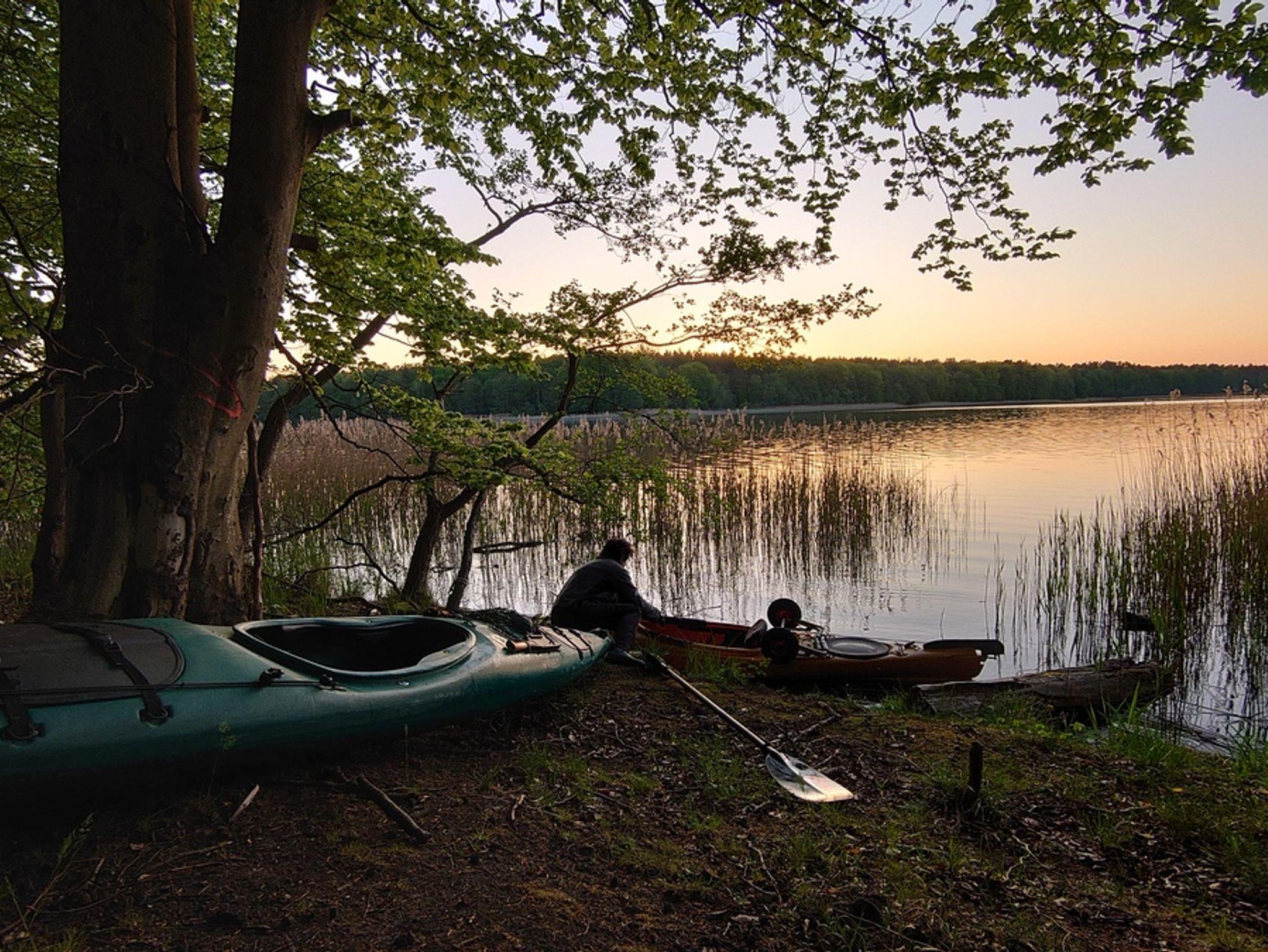 Das Grundstück hat einen Hinterausgang zum Wald und dem Moderfitzsee. Diverse Sitzgruppen, Grillplätze, eine Tischtennisplatte, Relaxliegen und eine große Wäschespinne können genutzt werden. Außerdem stehen 4 Zweierkajaks und ein Vier-Mann-Kanu, wasserfeste Tonnen für kleine Utensilien und Bootswagen für den Transport zum Wasser für Sie bereit.