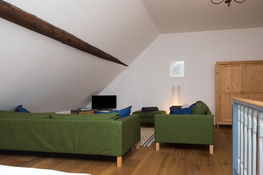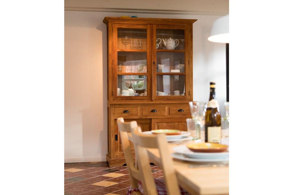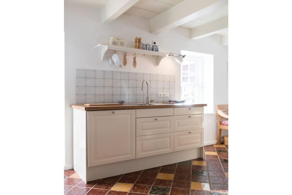 Urlaub im Denkmal mit vollem Wohnkomfort!Das bietet das Ferienhaus Alte Bäckerei, das wir mit viel Liebe zum Detail in den ursprünglichen Zustand von 1803 zurückgebaut haben. Die voll ausgestattete Küche mit gemütlichem Essplatz laden zu ausgedehnten Kochabenden ein. Eine kuschelige Sofaecke und der Kamin sorgen für schönes und erholsames Ambiente auch bei schlechterem Wetter. Für unsere kleinen Gäste stellen wir gerne kostenlos einen Hochstuhl und ein Reisebettchen zur Verfügung. Auch befindet sich in dem Ferienhaus eine kleine Auswahl an Kinderspielzeug. Das gesamte Erdgeschoss ist mit einer Fußbodenheizung ausgestattet, die für angenehmes Raumklima sorgt Draußen erwartet Sie eine schön möblierte Terrasse mit angrenzendem großen Garten.