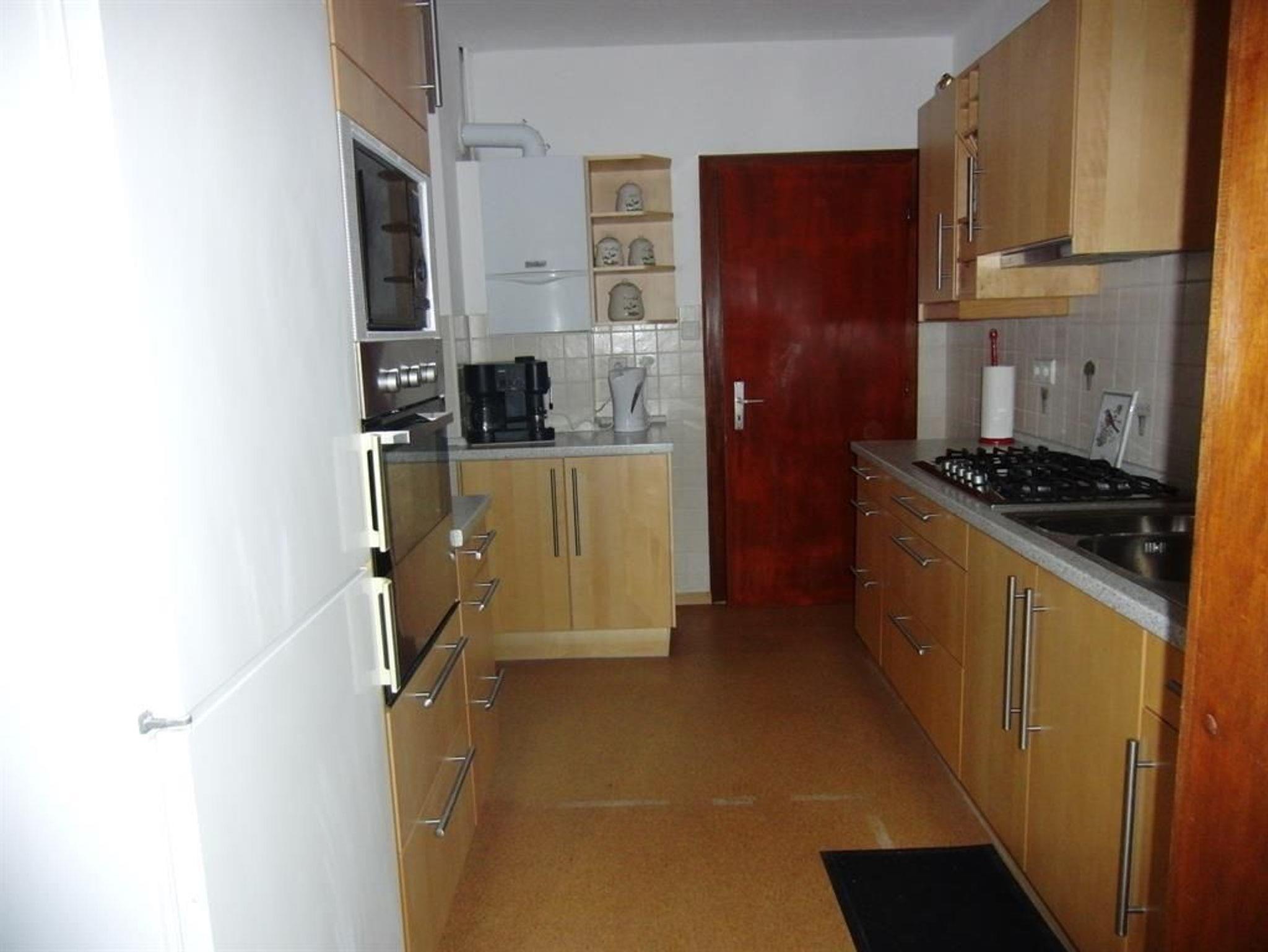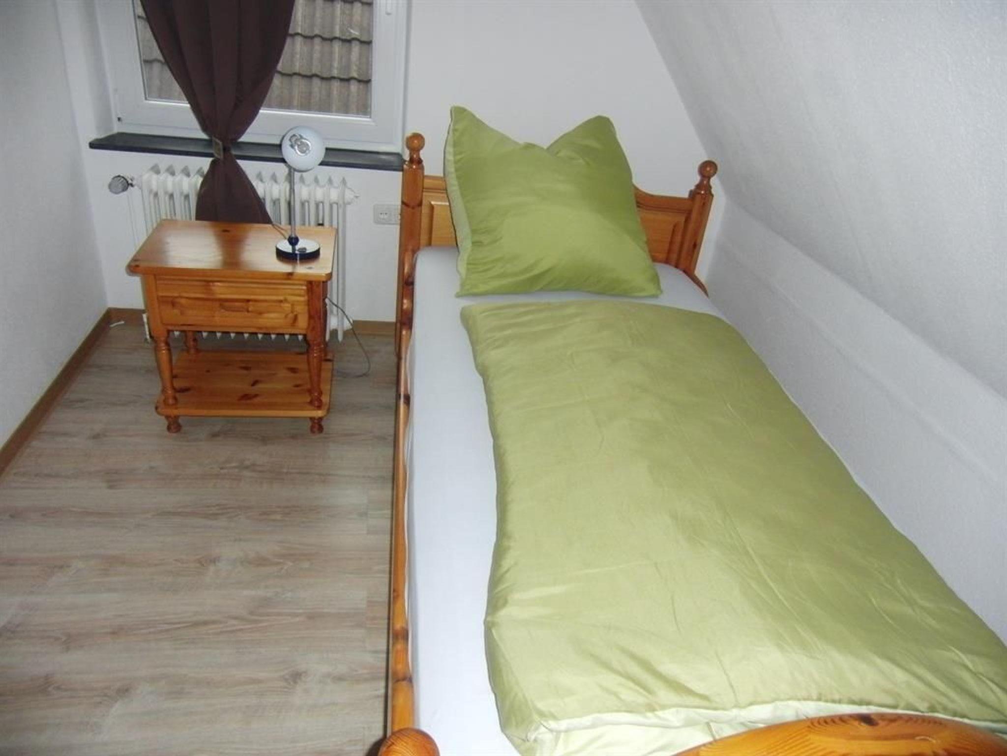 Die Wohnung verfügt über 3 Doppelzimmer mit 2x 1,80 x 2,00 Meter Betten und 1x einem 1,40 x 2,00 Meter Bett. Das Einzelzimmer hat ein 1,00 x 2,00 Meter großes Bett. Jedes Schlafzimmer hat einen TV, einen Kleiderschrank und ein Nachtschränkchen. Die Böden sind mit Laminat ausgelegt. Ein Wohnzimmer und eine Küche mit Gasherd stehen den Gästen zur Verfügung. In der unteren Etage befindet sich das Bad mit Dusche und WC, oben steht zusätzlich ein separates WC zur Verfügung.