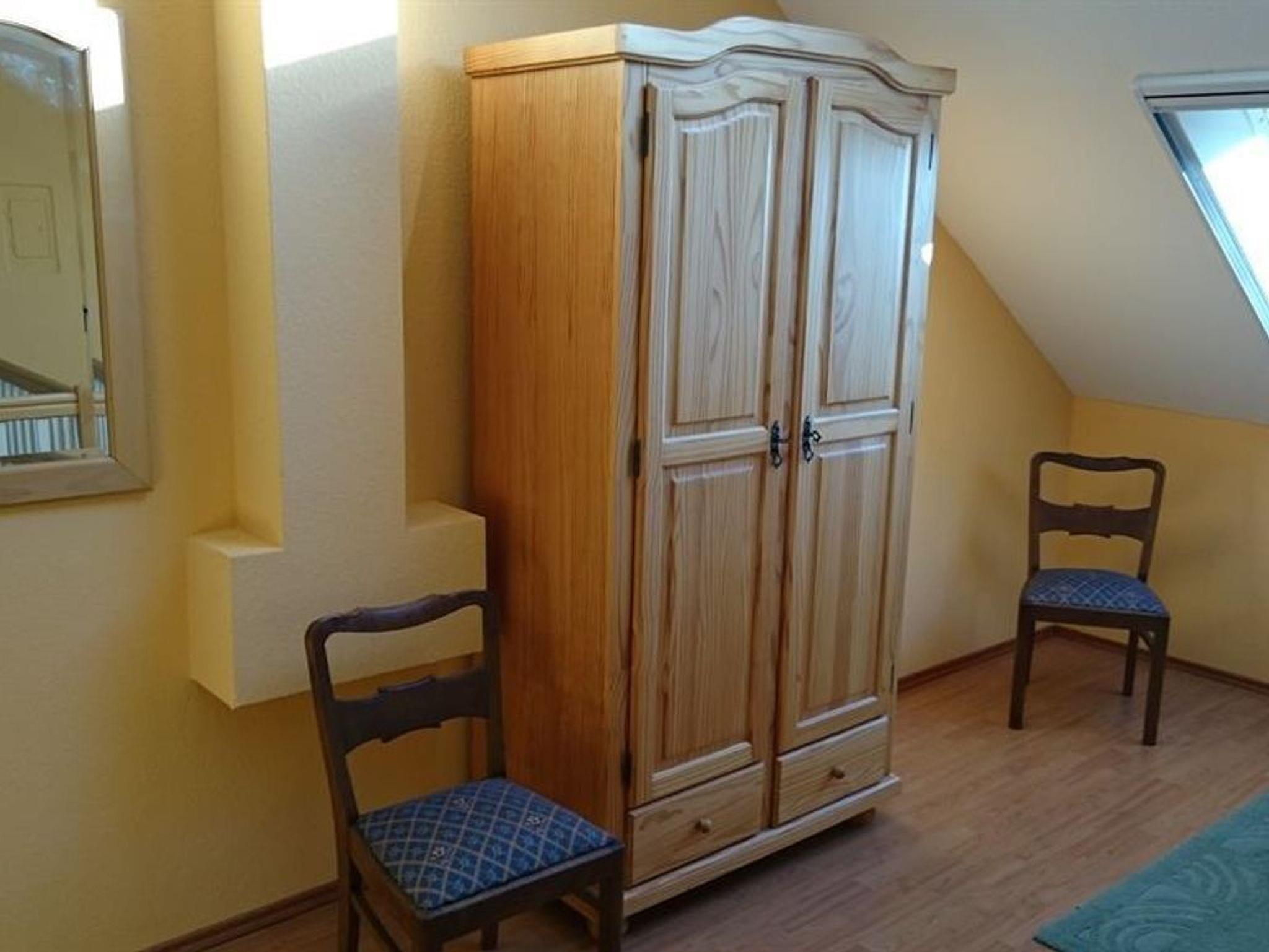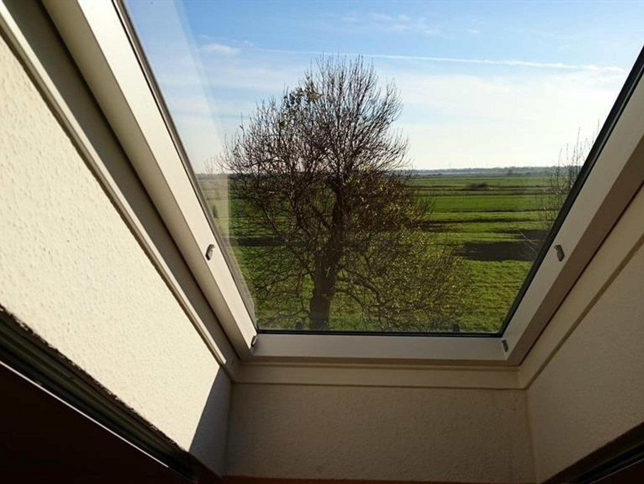 Die Ferienwohnung Galerie bietet mit 60 qm ausreichend Platz für bis zu 5 Personen; drei Erwachsene und zwei Kinder. Die Ferienwohnung erstreckt sich auf zwei Ebenen und wirkt aufgrund der offenen und hellen Gestaltung freundlich und einladend. Von der Galerie im zweiten Obergeschoss des Gulfhofs, auf der sich das Elternschlafzimmer befindet, schaut man auf das nahegelegene Kleine Meer - auch Hieve genannt - und hinunter in den Ess- und Wohnbereich. Der Essbereich hat eine komplett ausgestattete Küche mit Essgelegenheit und der Wohnbereich verfügt über eine gemütliche Sitzecke. Im Kinderschlafzimmer befindet sich ein Etagenbett sowie ein normales Bett. Dazu gehört eine eigene Terasse.