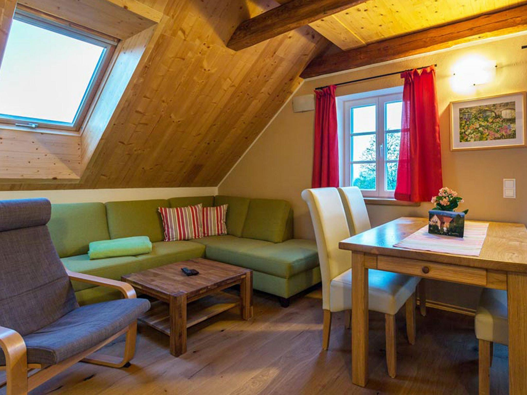 Die Ferienwohnung Lorenzstein liegt im Dachgeschoss des Hauses und ist über den Treppenflur erreichbar.