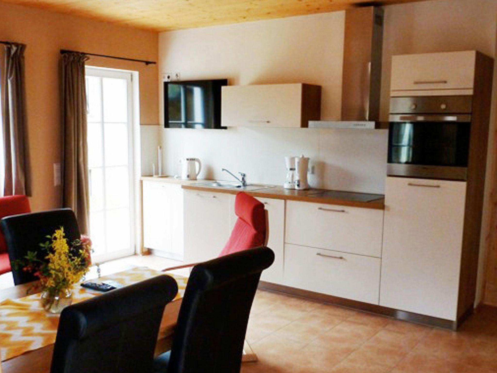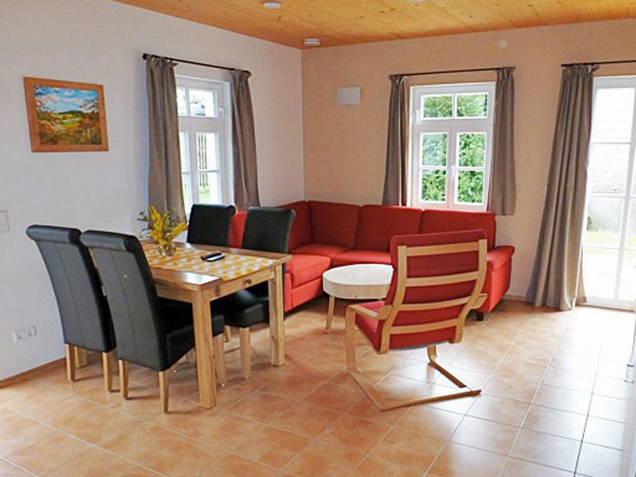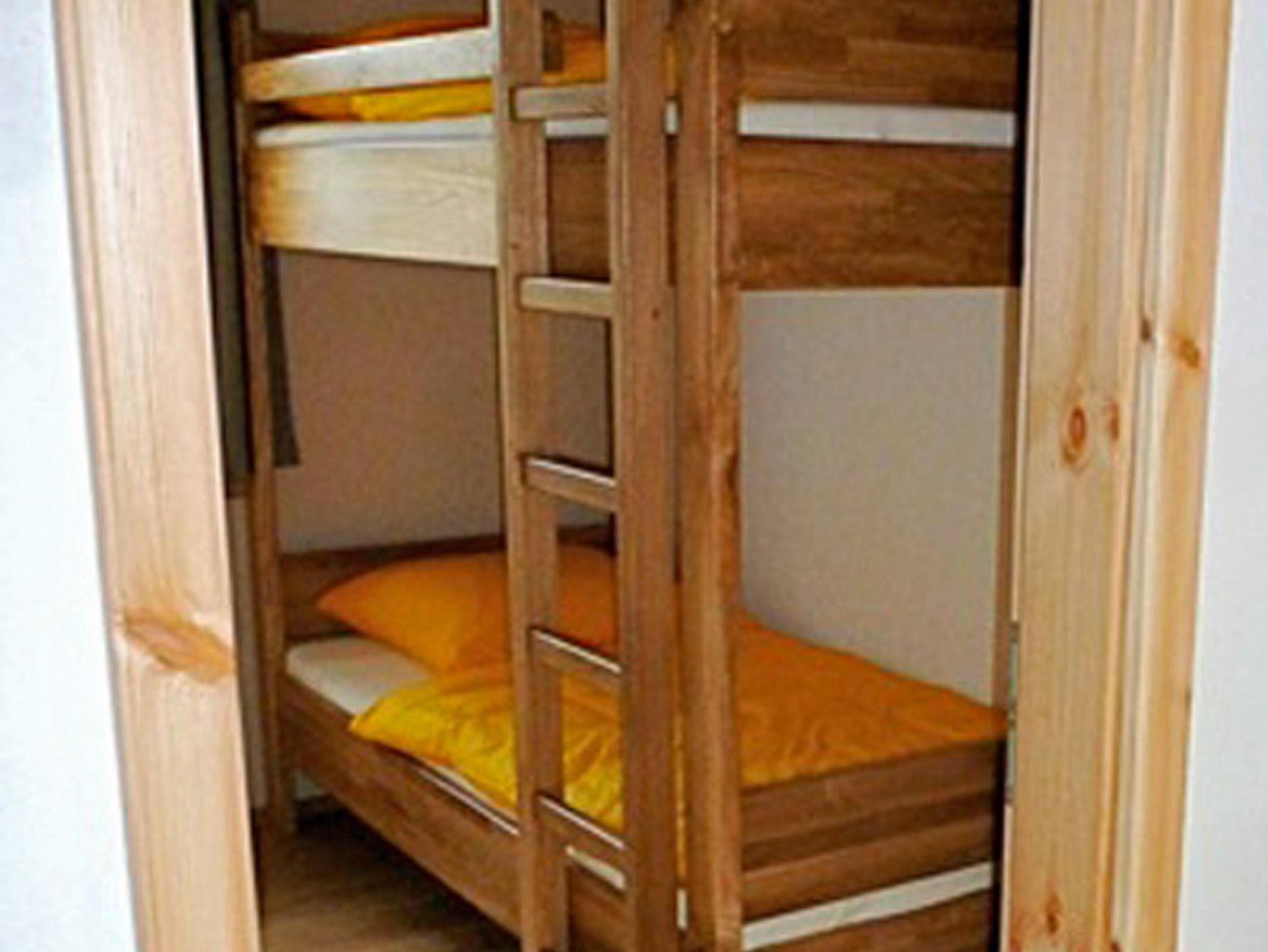 Sie ist ausgestattet mit zwei Schlafräumen (1x mit Doppelbett (180 cm x 200 cm) und Schrank und 1x mit Etagenbett und Schrank). Der Wohnbereich verfügt über eine voll ausgestattete Küche mit Geschirrspüler, großem Esstisch, komfortable Sitzecke mit Schlafcouch und Flat-TV. Das Tageslicht-Badezimmer verfügt über Dusche und WC. Kostenfreies WLAN und eine Terrasse, welche vom Wohnbereich erreichbar ist, steht ebenfalls zur Verfügung.