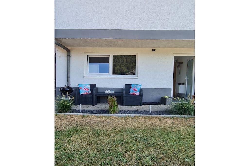 Directly on the forest, quiet location, view, upscale amenities, hiking, mountain bike, Felsenland, Wasgau, Alsace, Palatinate, terrace, climbing