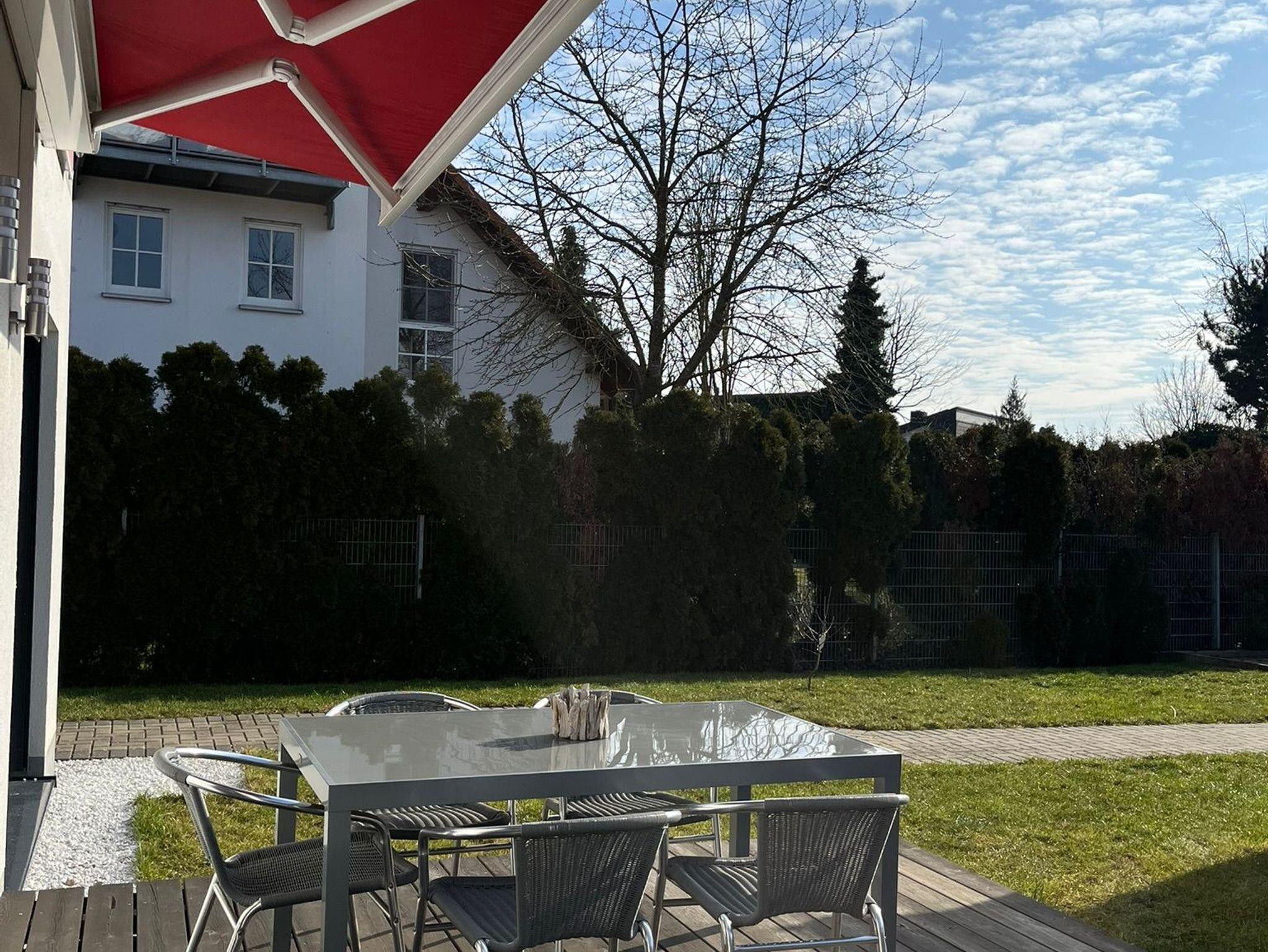 Im Erdgeschoss des Doppelhauses liegt die moderne, gut ausgestattete Küche (mit Geschirrspülmaschine etc.) sowie der Wohn-/Essbereich, von dem aus Sie auf die möblierte Terrasse und in den eigenen kleinen Garten gelangen.Im Eingangsbereich ist zudem eine Gästetoilette vorhanden.