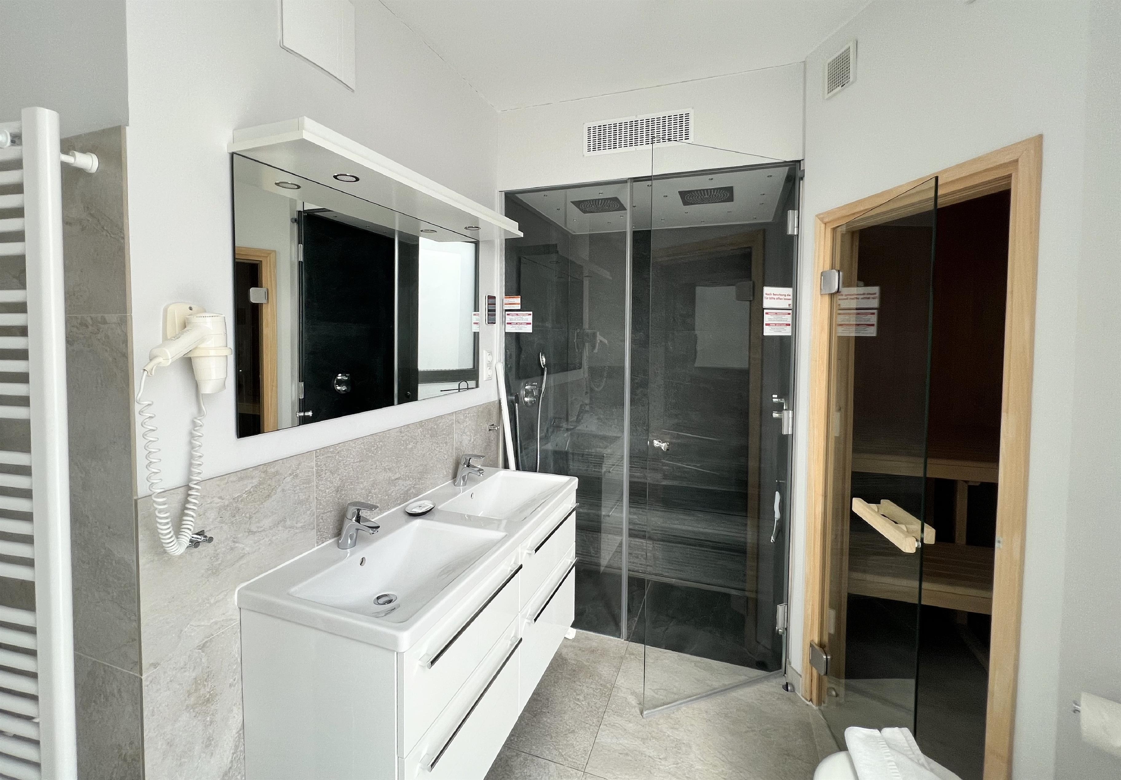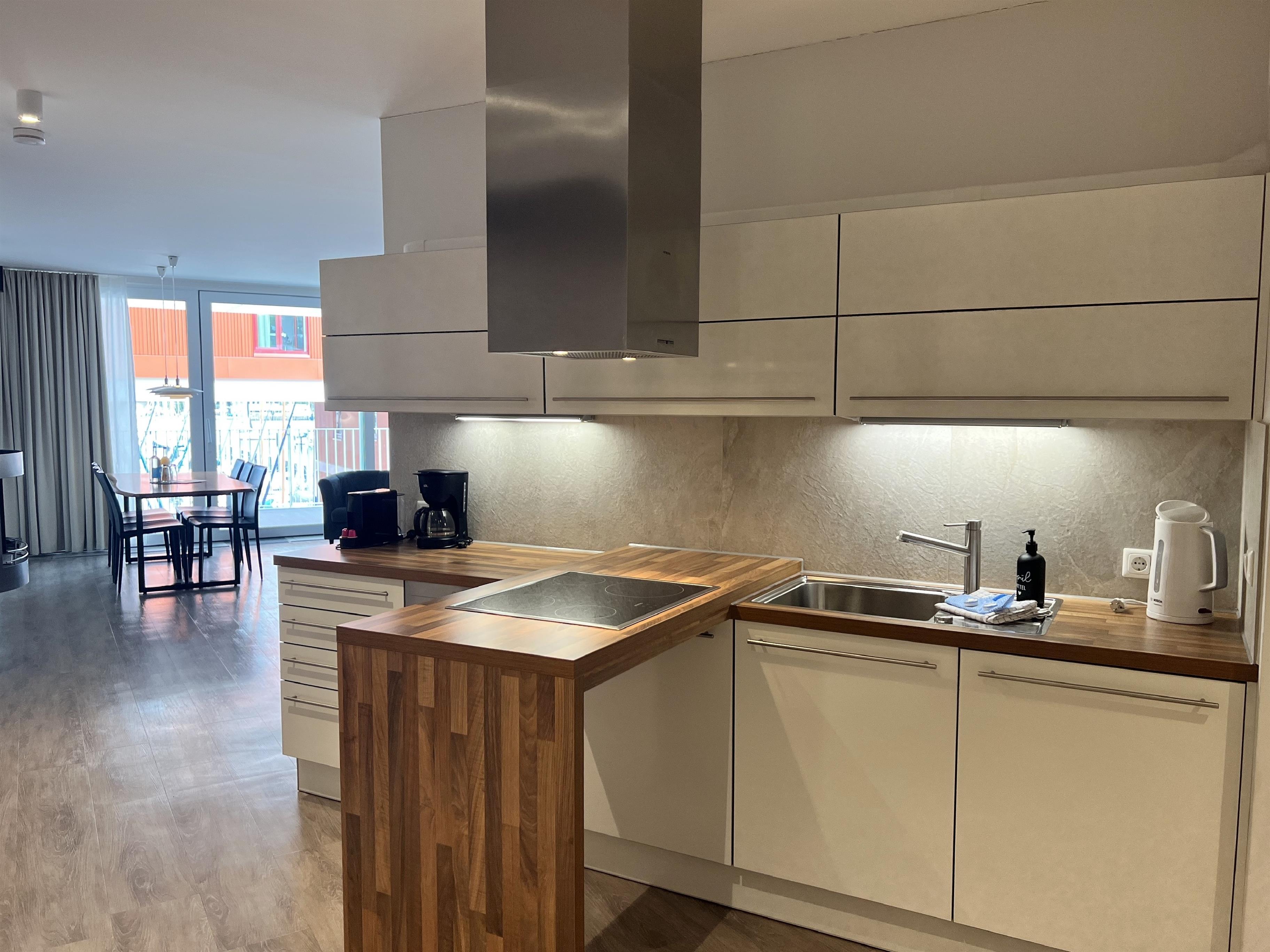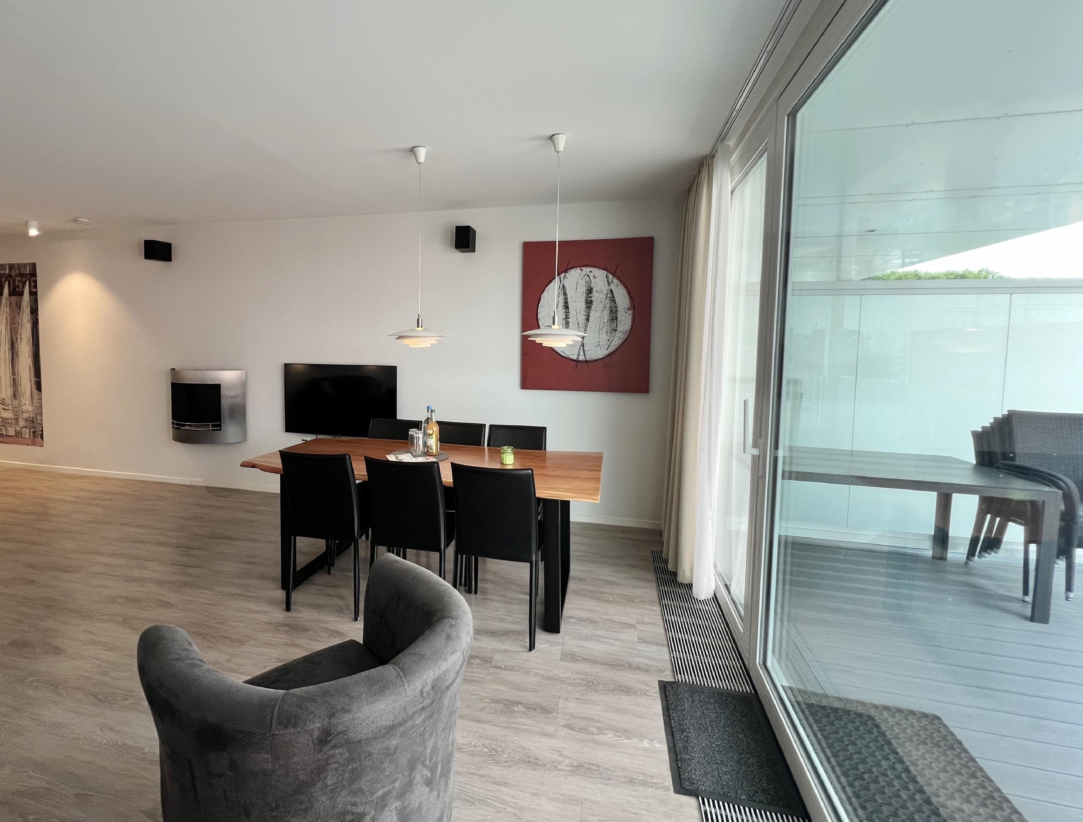 Die Wohnung ist stilvoll, hochwertig und modern eingerichtet. Ein besonderes Highlight ist ihr persönlicher Wellnessbereich mit Sauna, Whirlpool und Dampfbad mit integrierter Doppel-
