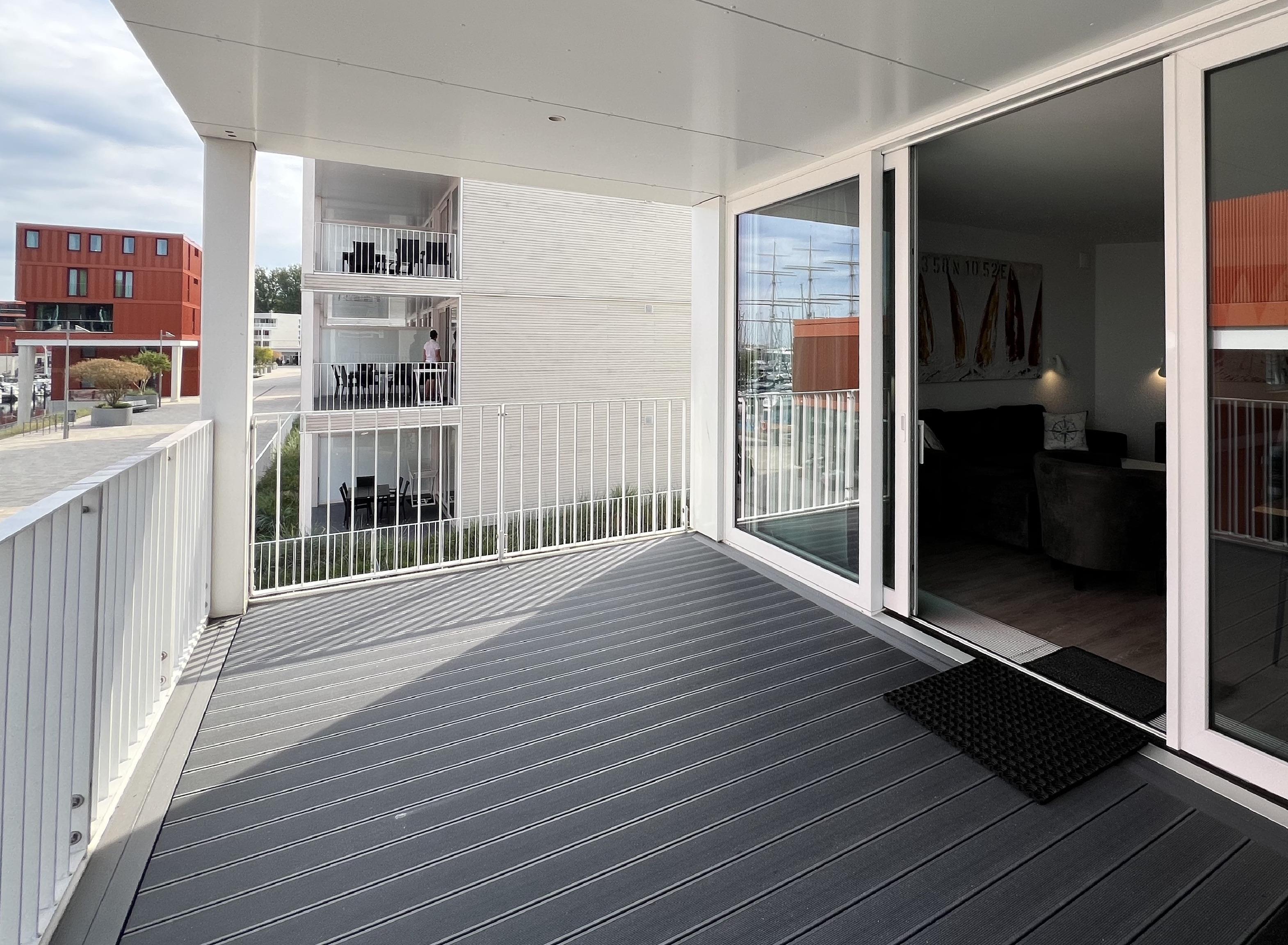 Regendusche. Im Wohnbereich sorgen am Abend die Flammen des Bioethanolkamins für eine gemütliche Atmosphäre, ebenso wie die vorbeifahrenden großen Schiffe mit ihrer eindrucksvollen nächtlichen Beleuchtung.