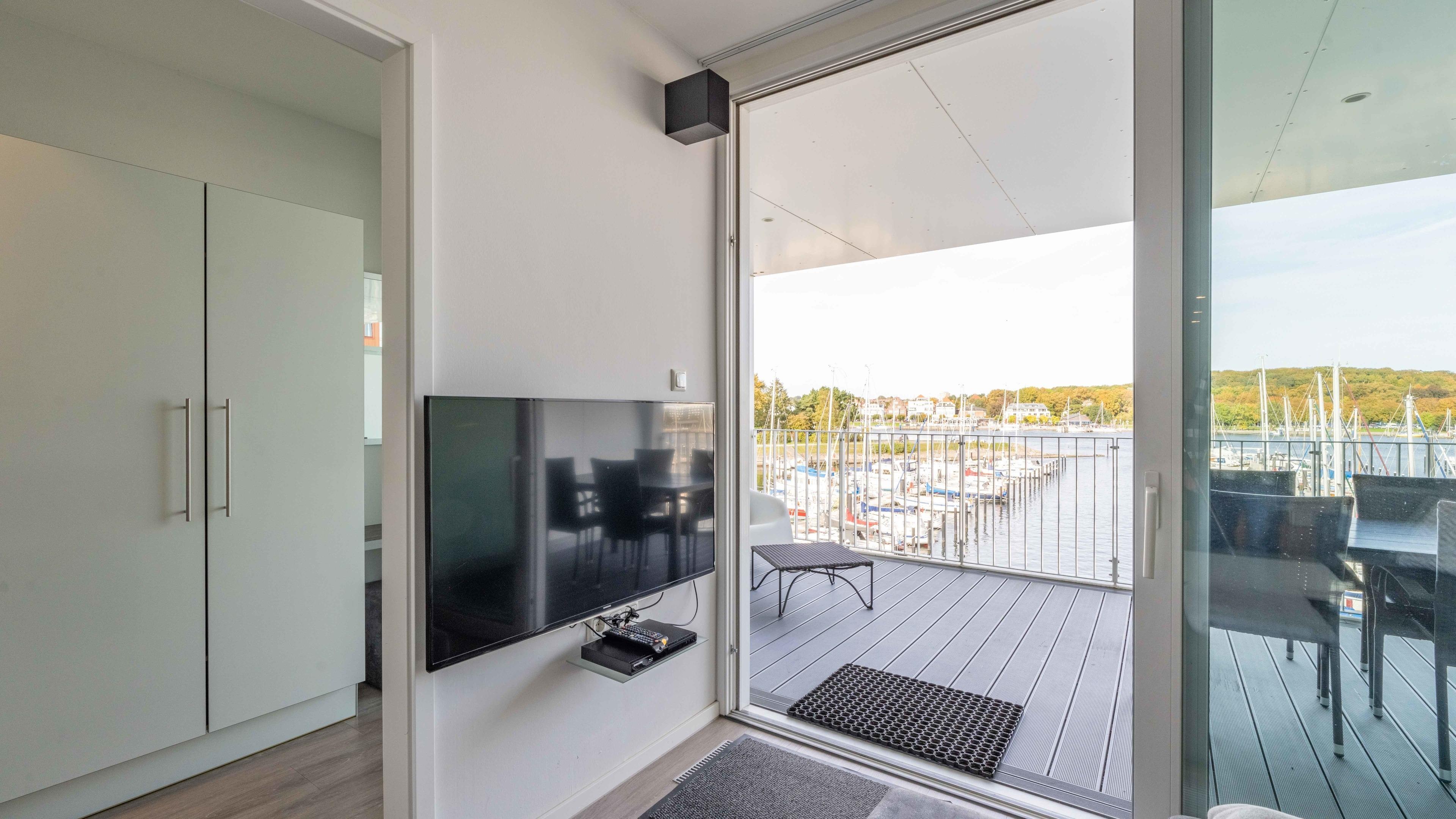 Regendusche. Im Wohnbereich sorgen am Abend die Flammen des Bioethanolkamins für eine gemütliche Atmosphäre, ebenso wie die vorbeifahrenden großen Schiffe mit ihrer eindrucksvollen nächtlichen Beleuchtung.