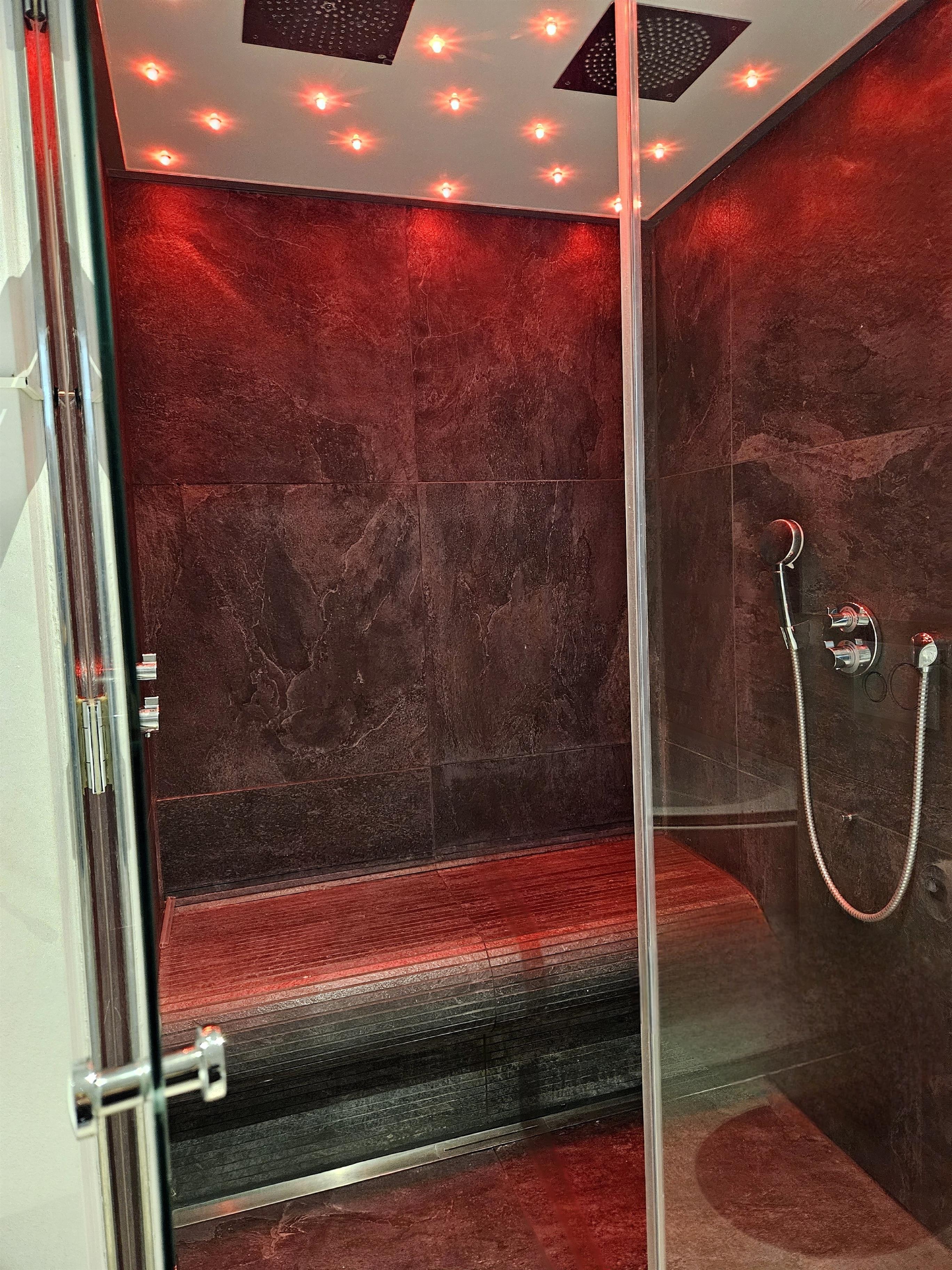 Die Wohnung ist stilvoll, hochwertig und modern eingerichtet. Ein besonderes Highlight ist ihr persönlicher Wellnessbereich mit Sauna, Whirlpool und Dampfbad mit integrierter Doppel-