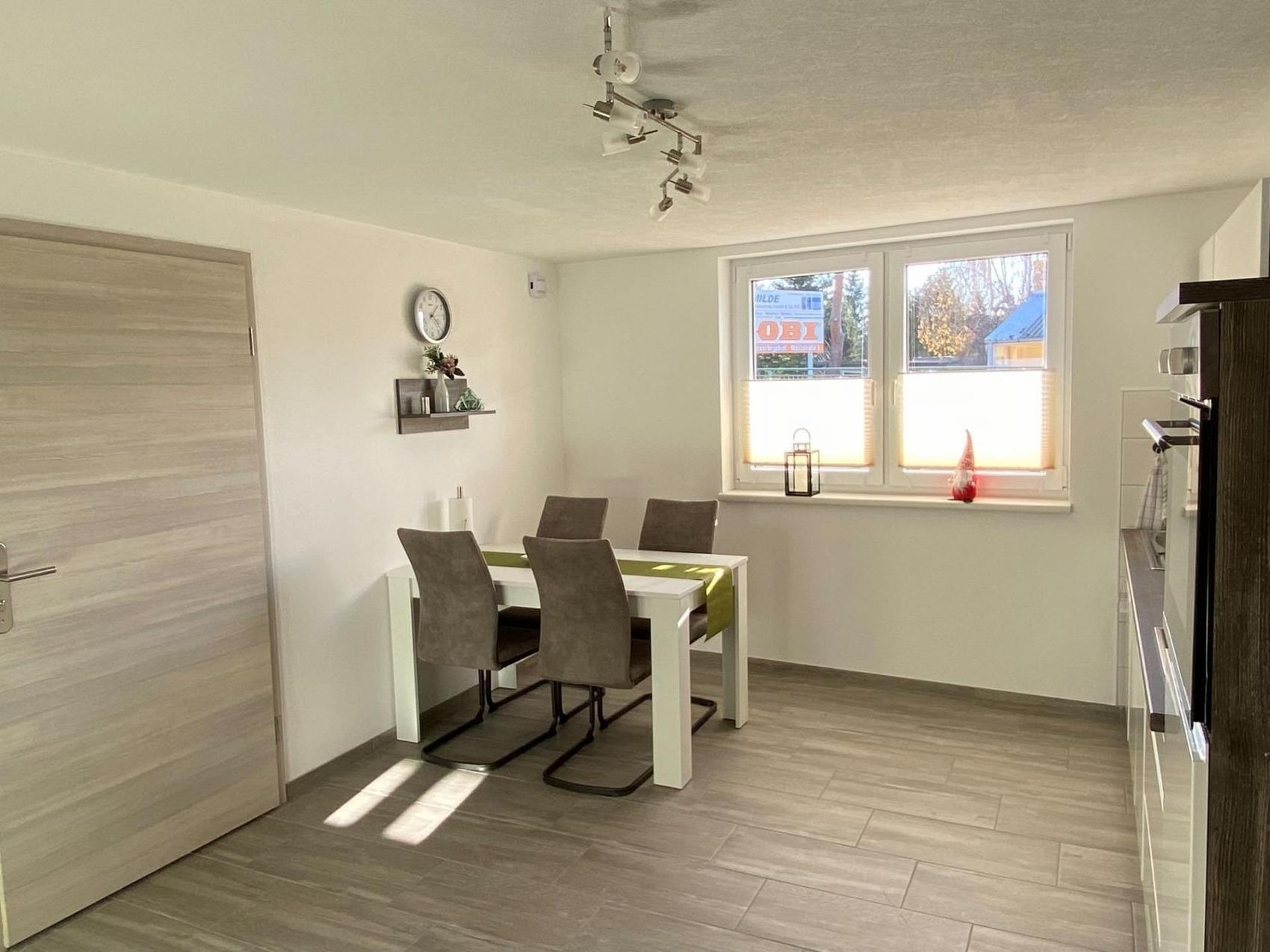 Das Objekt wurde im Jahr 2022 neu aus einem lang leer stehenden Gebäude errichtet. Es entstanden 2 geräumige Ferienwohnungen. Beide Wohnungen sind hell und gemütlich und wurden komplett mit neuen Möbeln ausgestattet. Verbunden sind diese über ein gemeinsames Treppenhaus. ***Ferienhaus mit 2 Ferienwohnungen *** Die komplett neu eingerichteten Ferienwohnungen sind hell und freundlich. Sie verfügen über komplett eingerichtete Küchen, jeweils einen Essbereich für 4 Personen, dieser kann im Erdgeschoss auf Wunsch auch für 8 Personen umgerüstet werden. In den Wohnzimmern ist jeweils eine gemütliche Wohnlandschaft sowie ein Fernseher. In jeder Ferienwohnung gibt es ein Schlafzimmer mit einem Doppelbett (180 x 200) und einem großzügigen Kleiderschrank. Das zweite Schlafzimmer verfügt über 2 getrennte Betten (90 x 200), einer großen Kommode und einem Fernseher. Die Badezimmer sind großzügig geschnitten, mit ebenerdiger Dusche, WC und Waschbereich. *** Bettwäsche, 1 Set Handtücher/Pers. sowie Wischtücher werden gestellt. *** WLAN ist in beiden Wohnungen kostenfrei. *** Babybetten und ein Kinderhochstühle sind vorhanden. Diese können gern angefragt und gegen eine kleine Gebühr vor Ort gemietet werden. Bitte beachten Sie, dass beides nur in begrenzter Anzahl vorhanden ist, um Reservierung wird gebeten. *** In den Wohnungen ist das Rauchen verboten. Hierfür können Terrasse oder Balkon gern genutzt werden. *** Die firmeneigene Waschmaschine bzw. der Wäschetrockner können gegen eine Gebühr benutzt werden. *** Parkplätze stehen kostenfrei zur Verfügung. *** Direkt nebenan befindet sich eine Bäckereiverkaufsstelle. Hier gibt es täglich (außer Dienstag und Sonntag) frische Brötchen und andere Leckereien. Perfekt für einen guten Start in den Tag. *** Das Objekt ist ein perfekter Ausgangspunkt für zahlreichen Unternehmungen hier in der Oberlausitz. Hier ist für jeden etwas dabei. Egal ob Wandern oder eine Runde mit dem Rad fahren (Fahrradweg geht unmittelbar vor dem Haus entlang). Auch für Ausflüge mit den Kindern ist die Lage perfekt. So sind z. B. der Saurierpark und der Irrgarten in Kleinwelka oder auch der Stausee in Bautzen mit Minigolf, Kletterpark oder Badestrand ein Ausflugsziel. Aber auch die Städte Bautzen und Löbau laden zu Besichtigungen ein.