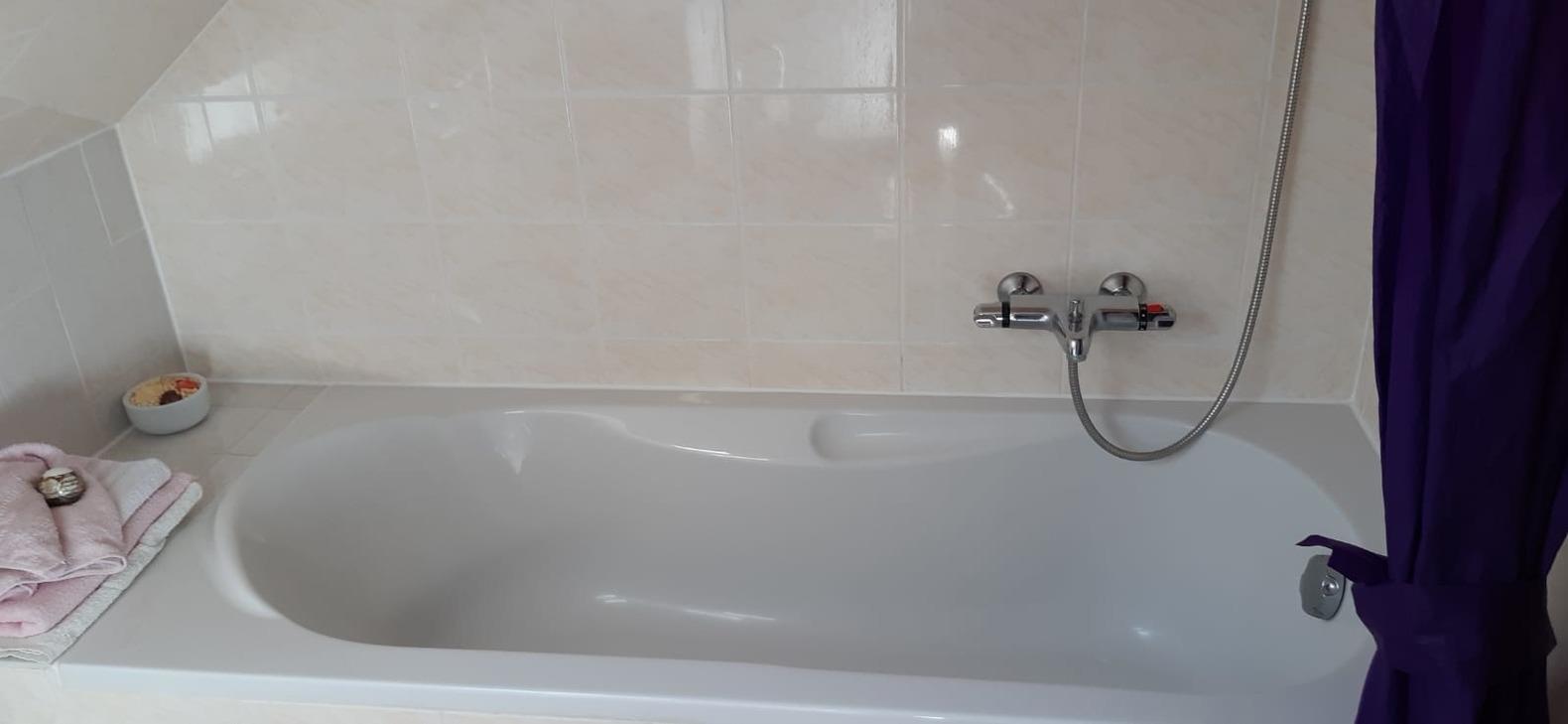 Badeværelse med bruser og badekar