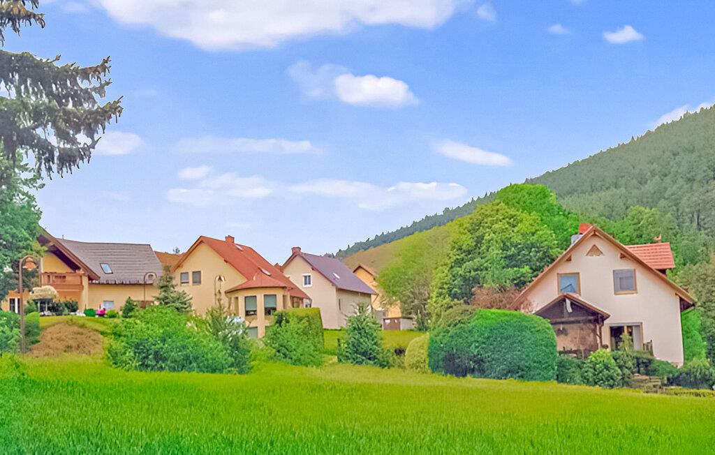 Ferielejligheden er beliggende i stueetagen i en beboelsesejendom på ejerens 800 kvadratmeter store boligejendom indenfor et boligområde. Den er udstyret med: kombineret stue (polstrede møbler med sovefunktion, sidde-/spiseplads, LCD TV, radio/CD, dobbeltseng, gæsteseng til ekstra brug), åbent tekøkken (elkomfur med ovn, køleskab med fryser, opvaskemaskine, mikroovn), Brus/WC, centralvarme. Tilgængelig: Internet, parkeringsplads og opbevaringsplads til cykler. Den samlede pris inkluderer slutrengøring, sengelinned, håndklæder, vand og energi. Kæledyr er ikke tilladt i denne ejendom. Uhlstädt-Kirchhasel er en kommune i Thüringer-distriktet Saalfeld-Rudolstadt. Saale flyder igennem den. De højeste bjerge når en højde på op til 450 meter. Vest for samfundet ligger byen Rudolstadt med det vartegn Heidecksburg Slot, som kan ses på afstand. Afstande: Rudolstadt 7 km Großkochberg Slot 9 km Greifenstein Slot, Bad Blankenburg 12 km Jena 33 km Erfurt 50 km Weimar 55 km.