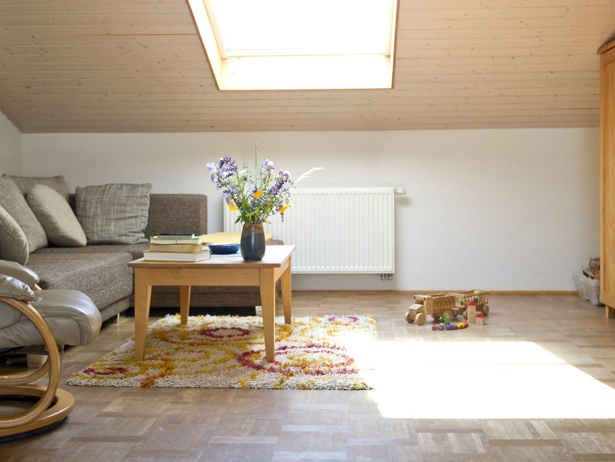 Die Wohnung Unterm Dach ist ca. 110m² groß und sehr schön mit naturbelassenen Vollholzmöbeln vom Schreiner, geölten Parkett- und Fliesenböden eingerichtet.