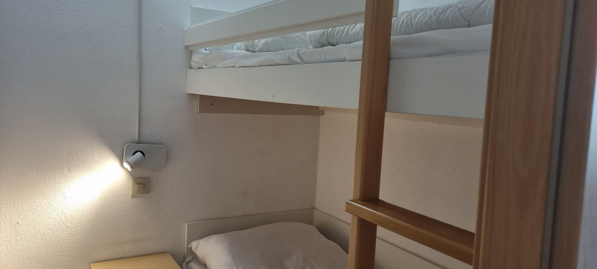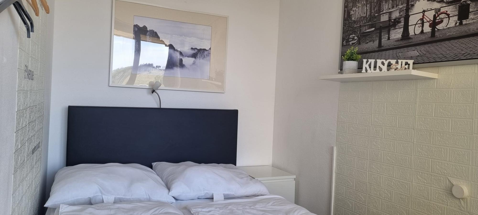 Komfortabel ausgestattete, Nichtraucher- Ferienwohnung mit einem Schlafraum mit Doppelbett (1,60 x 2,00 m) und Stockbett für die Kinder im zweiten Schlafraum, schicke neue Küche, Essecke und Wohnraum mit bequemer Sitzgarnitur. Der Wohn-und Schlafbereich ist mit Laminatboden ausgestattet.
