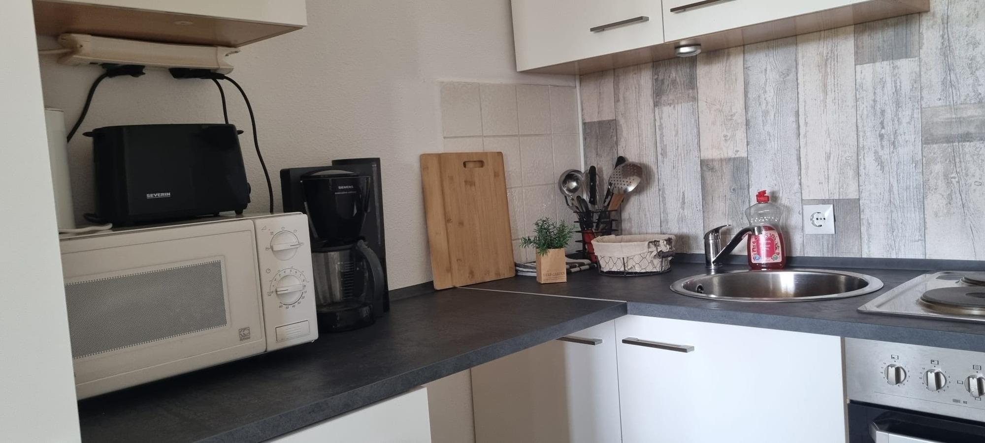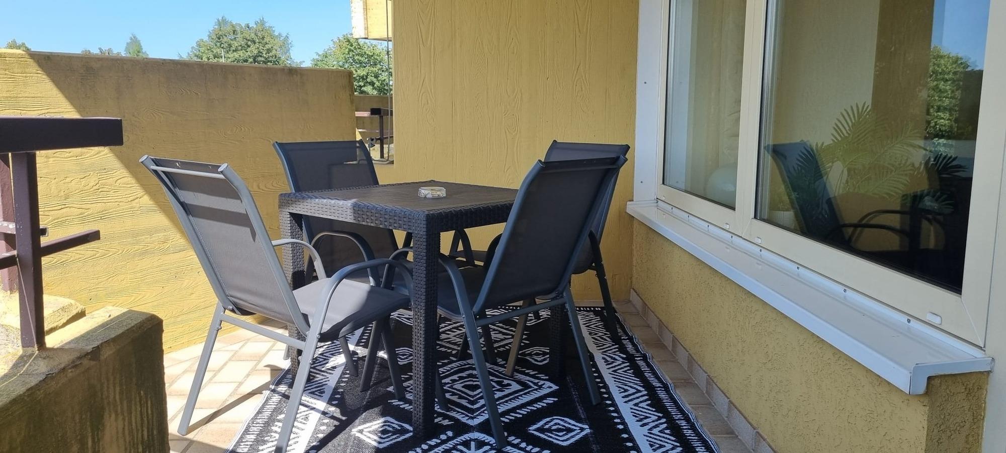 Das Appartement verfügt über einen geräumigen, sonnigen Balkon mit Gartenmöbeln. Ihr Hund darf auch mitkommen.