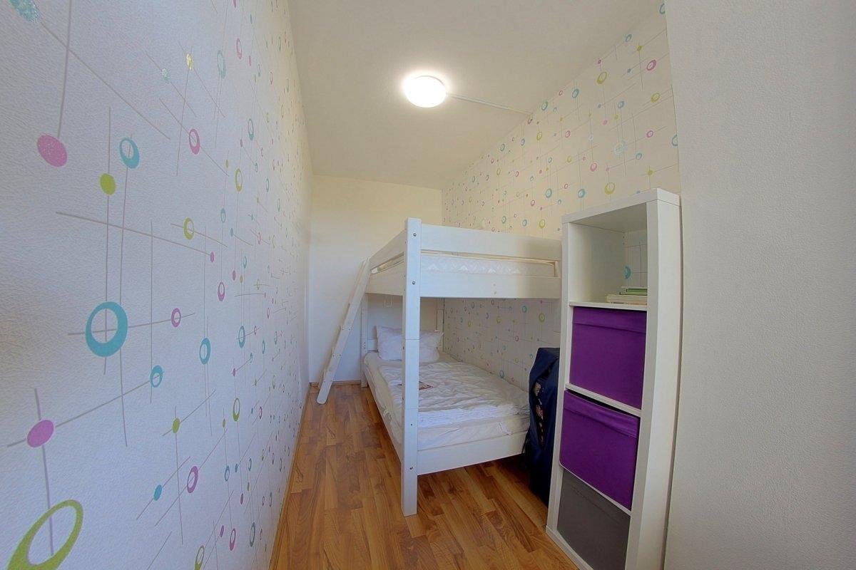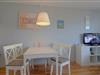 Komfortabel ausgestattete, Nichtraucher- Ferienwohnung mit einem Schlafraum mit Doppelbett (1,60 x 2,00 m) und Wohnbereich mit Küchenzeile, Essecke und Wohnraum. Der Wohn-und Schlafbereich ist mit Laminatboden ausgelegt. Ein weiters Schlafzimmer mit Stockbett