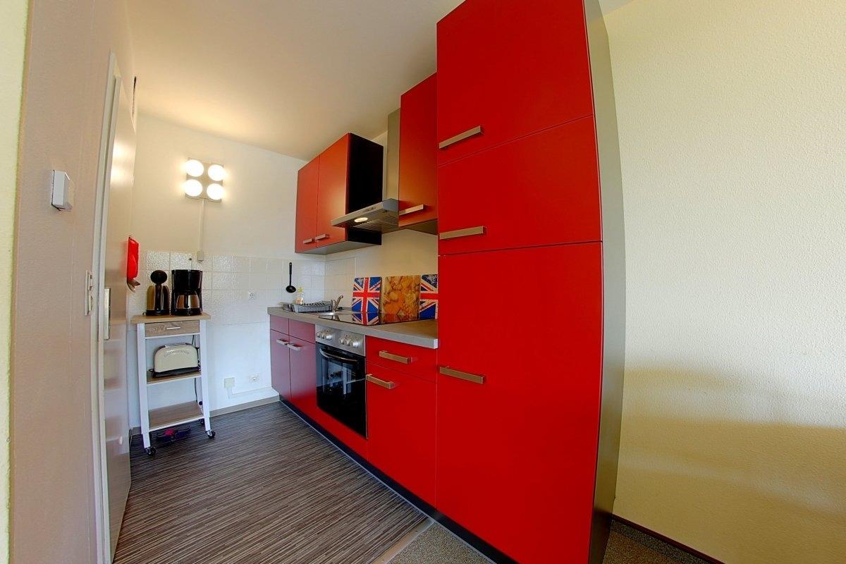 Gemütliche Nichtraucher- Ferienwohnung mit zwei Schlafräumen mit Doppelbett (1,80 x 2,00 m) und Stockbett für die Kinder im zweiten Schlafraum, schicke neue Küche, Essplatz und Wohnraum. Der Wohn-und Schlafbereich ist mit Teppichboden ausgestattet. Wannenbad mit WC. Haustiere sind nicht erlaubt