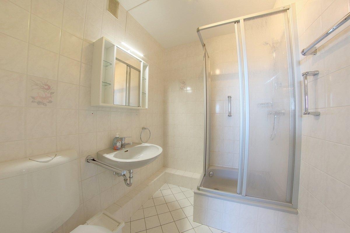 Die Küche mit Geschirrspüler und 2-Plattenherd ist ausreichend für kleine Mahlzeiten. Ein hell gefliestes Duschbad mit WC gibt es ebenfalls.