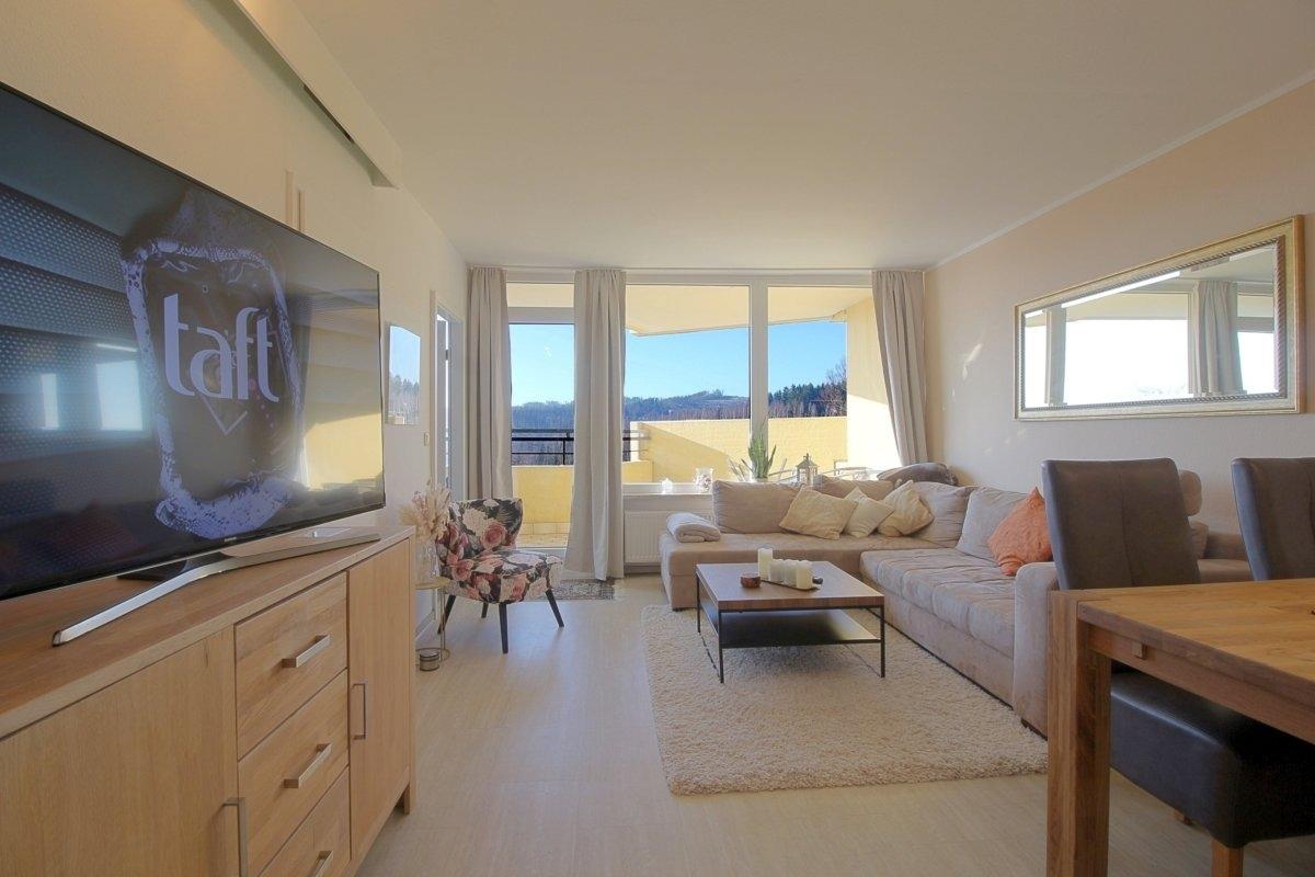 Das Appartement verfügt über einen geräumigen, sonnigen Balkon mit Blick nach Westen