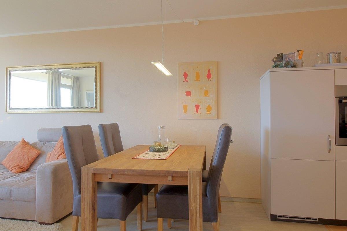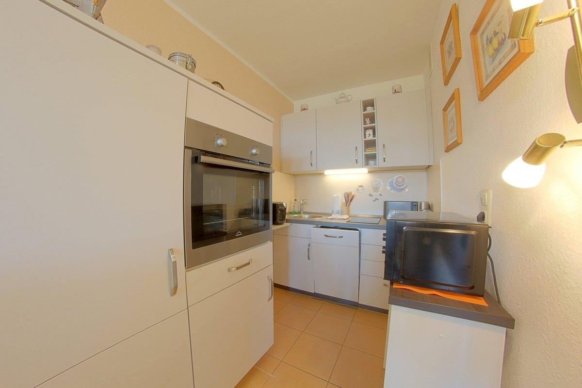 Hell und freundlich präsentiert sich diese schick renovierte Nichtraucher- Ferienwohnung mit einem Schlafraum mit Boxspringbett (1,80 x 2,00 m) und TV und im zweiten Schlafraum ein kleines Doppelbett (1,20 x 2,00m).[nbsp] Moderne Einbauküche mit Essecke und Wohnraum mit großem Ecksofa. Die Wohnung ist mit pflegeleichten PVC-Bodenbelägen im Wohn- und Schlafbereich ausgestattet. Modernes Wannenbad