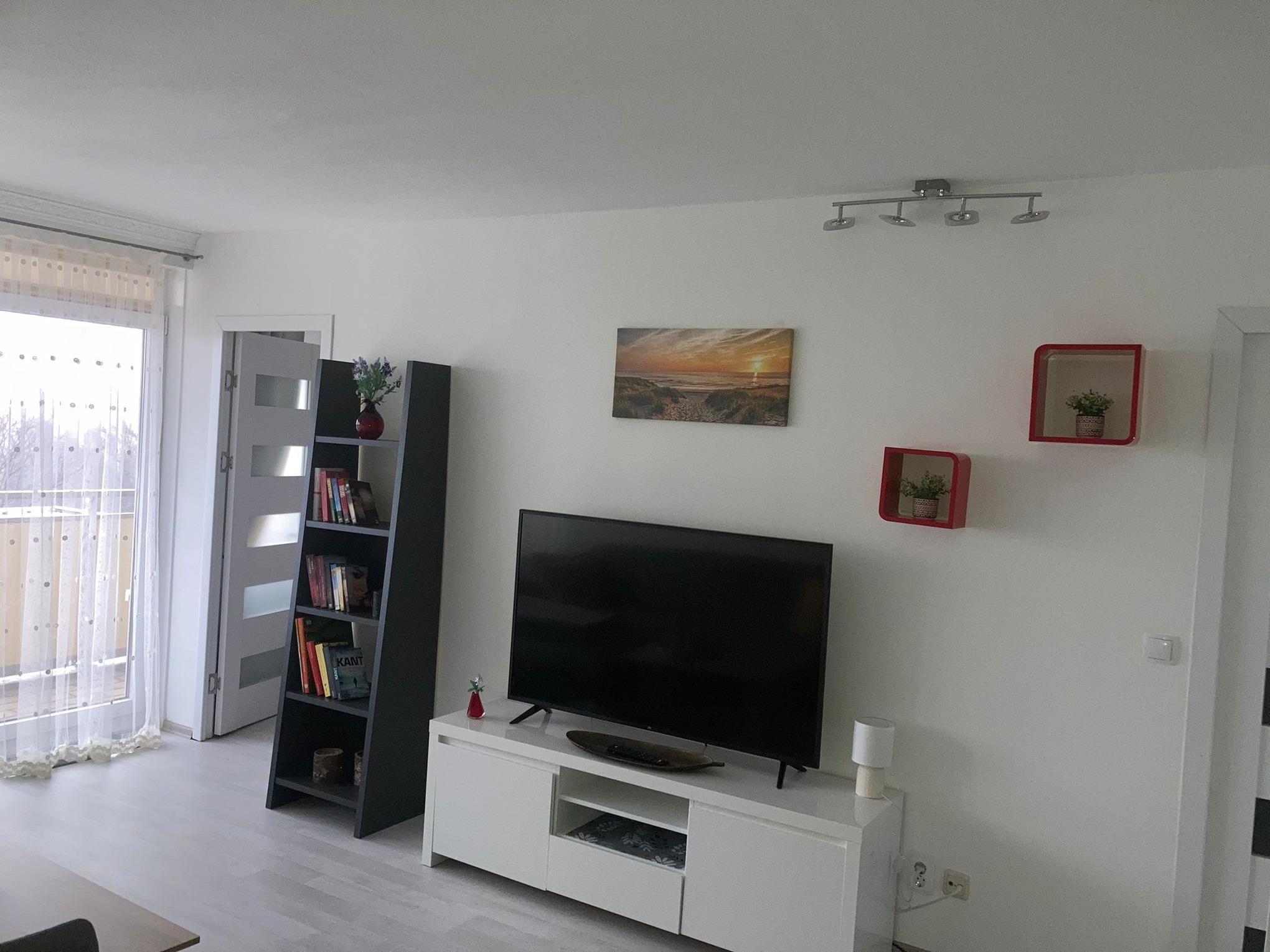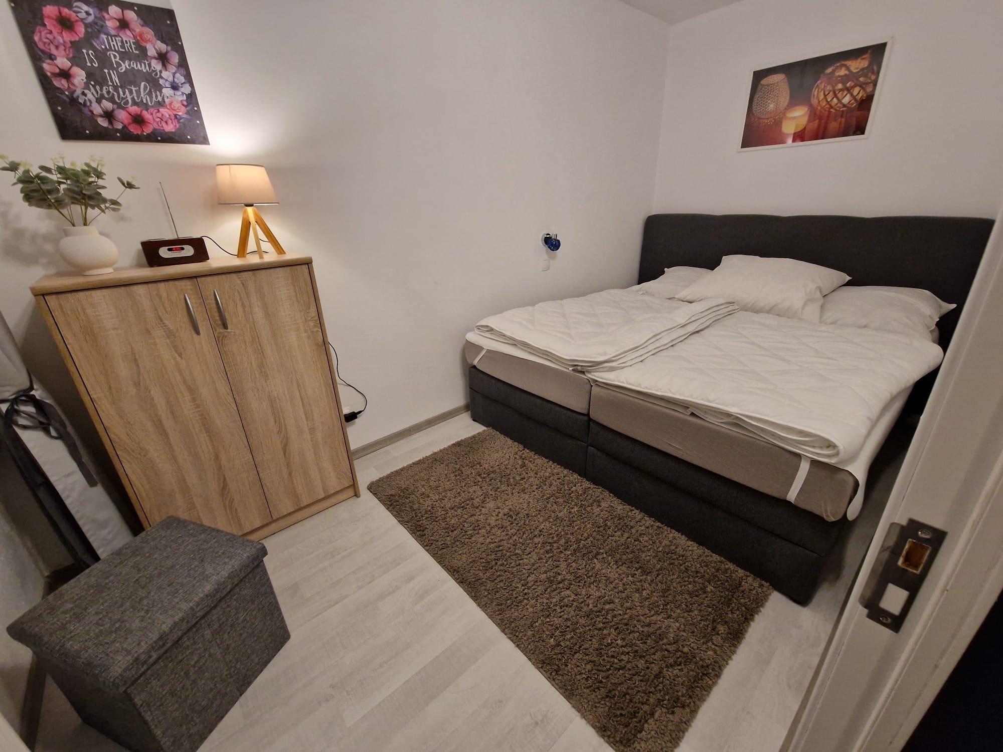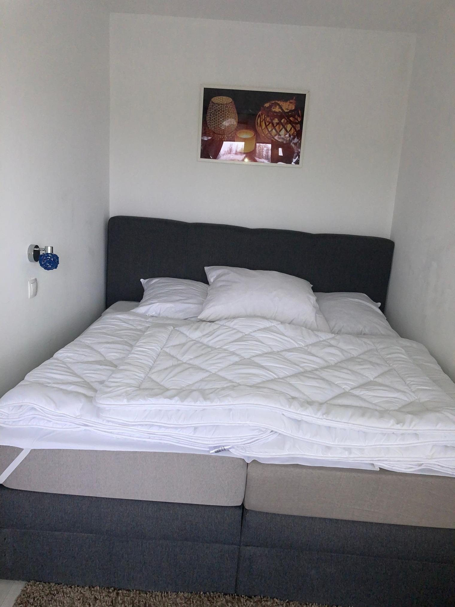Hell und freundlich präsentiert sich diese frisch renovierte Nichtraucher- Ferienwohnung mit einem Schlafraum mit Doppelbett (1,80 x 2,00 m)und Schlafcouch im Wohnbereich