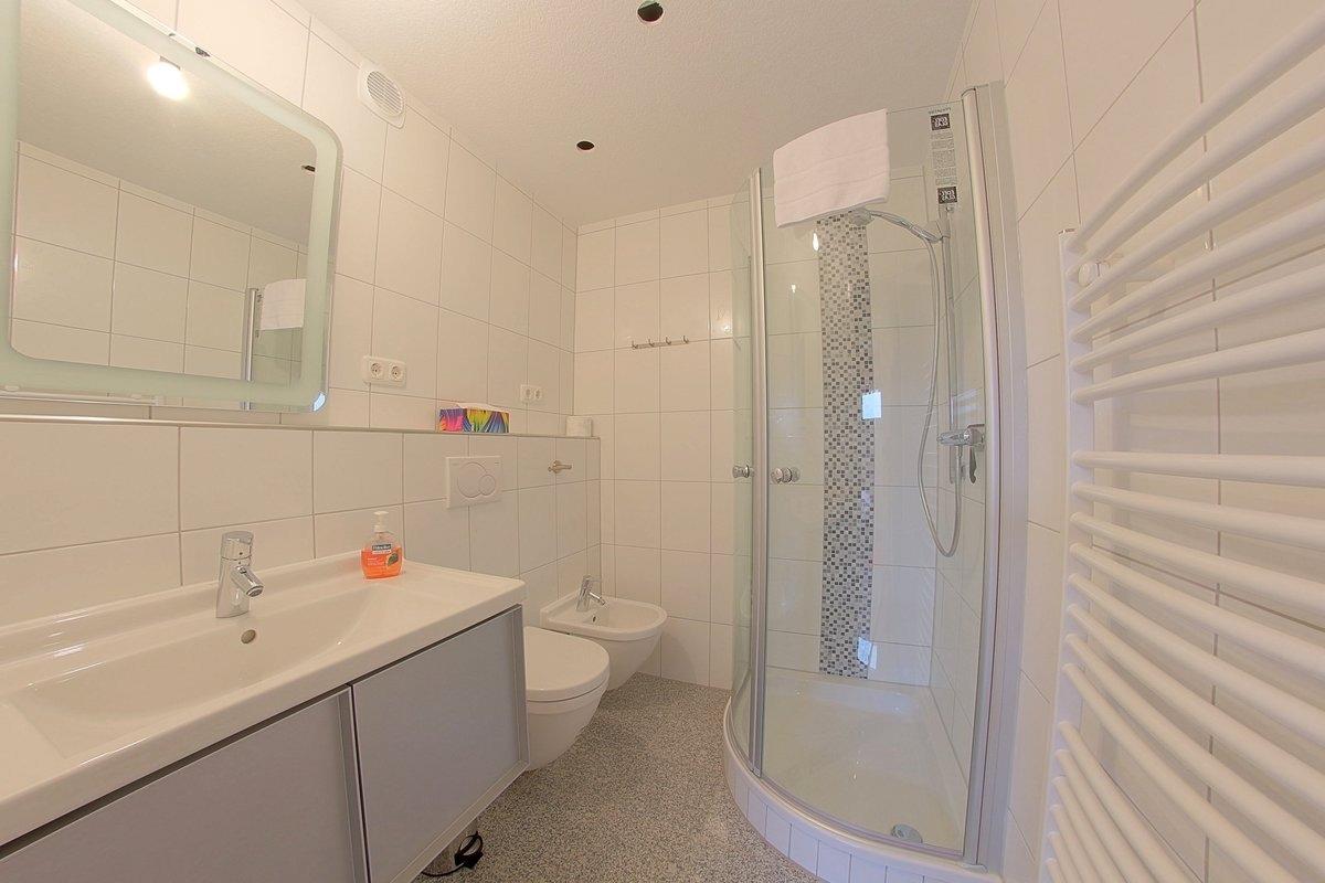 Die Nichtraucher-Ferienwohnung ist komplett saniert und sehr modern und hochwertig ausgestattet. Es handelt sich um eine Nichtraucherwohnung, mit einem großzügigen Wohn- und Essbereich. Im Wohnzimmer finden Sie eine bequeme Ledersitzgarnitur (mit Schlaffunktion für 2 Personen) einen großen Flachbild-TV, einen Essbereich und eine hochwertige neue Küche mit Geschirrspüler vor. Die sehr ansprechende Küche lässt auch bezüglich der Ausstattung keine Wünsche offen. Im Schlafzimmer befindet sich das elektrisch verstellbare sehr bequeme Doppelbett (1,80 x 2,00 m), ein großer Kleiderschrank und ein weiteres TV- Gerät. Das schicke, neue moderne Duschbad mit Bidet und Handtuchheizung komplettiert die Ferienwohnung. Die ganze Wohnung ist allergikerfreundlich mit hochglänzendem ästhetisch ansprechendem Granitboden ausgestattet.