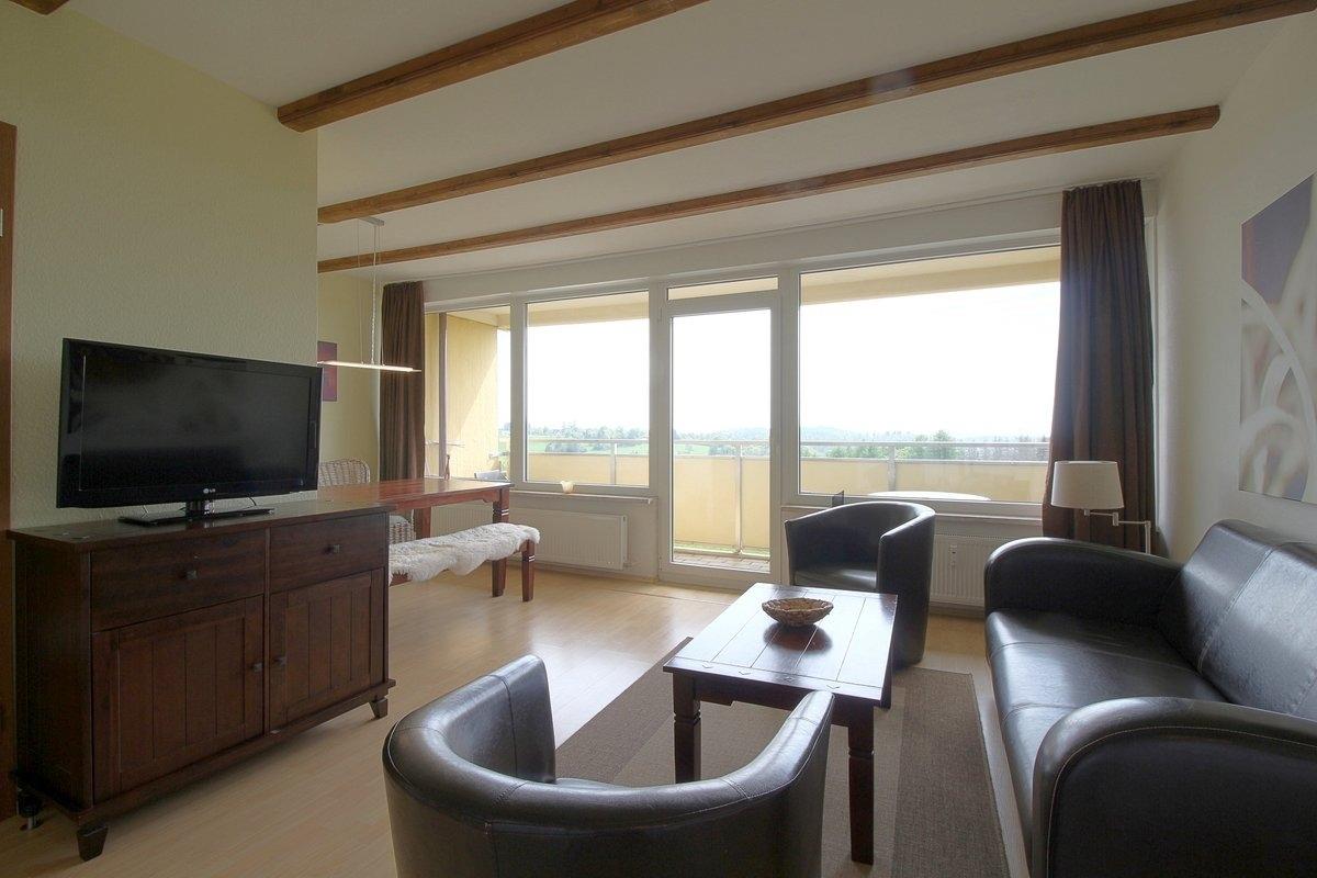 In der 6. Etage liegt diese Ferienwohnung mit 2 Schlafzimmern. Kostenlose Schwimmbad Nutzung im Haus, Sauna gegen Gebühr, Minigolf, Rodelbahn und Spielplatz direkt am Haus.
