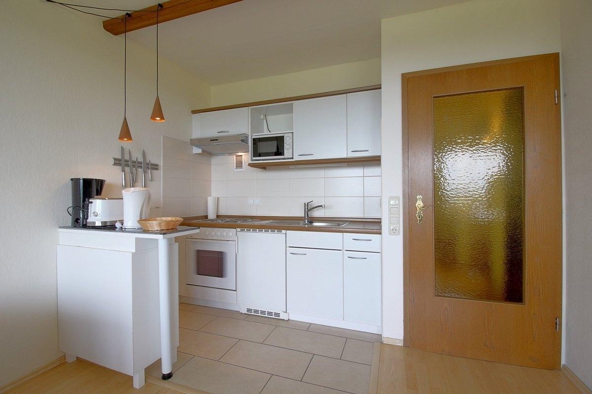 Komfortabel ausgestattete, Nichtraucher- Ferienwohnung mit einem Schlafraum mit Boxspringbett (1,80 x 2,00 m) und Stockbett für die Kinder im zweiten Schlafraum, schicke neue Küche , Essecke und Wohnraum mit bequemer Sitzgarnitur. Der Wohn- und Schlafbereich ist mit Laminatboden ausgestattet. Modernisiertes Wannenbad und kostenloses W-Lan in der Wohnung vorhanden