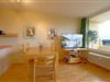 Komfortabel ausgestattete, Nichtraucher- Ferienwohnung mit einem Schlafraum mit 2 Einzelbetten (0,90 x 2,00 m) und Küchenzeile mit Essecke und Wohnraum und TV.[nbsp] Der Wohn-und Schlafbereich ist mit Laminatboden ausgestattet.