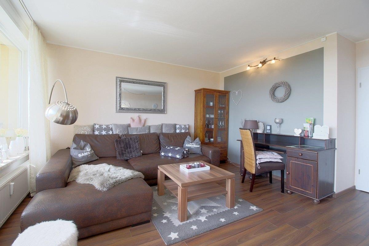 Modern renovierte Nichtraucher-Ferienwohnung mit 1 Schlafzimmer mit Doppelbett (1,80x2,00m), Im Wohnzimmer gibt es eine großzügige Wohnlandschaft.