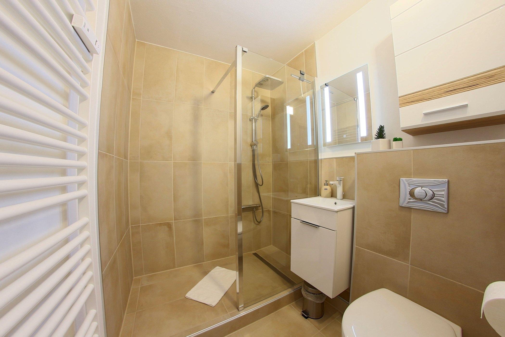Die gesamte Wohnung ist mit Vinylboden ausgestattet. Ein modernisiertes Duschbad gehört zur Wohnung.