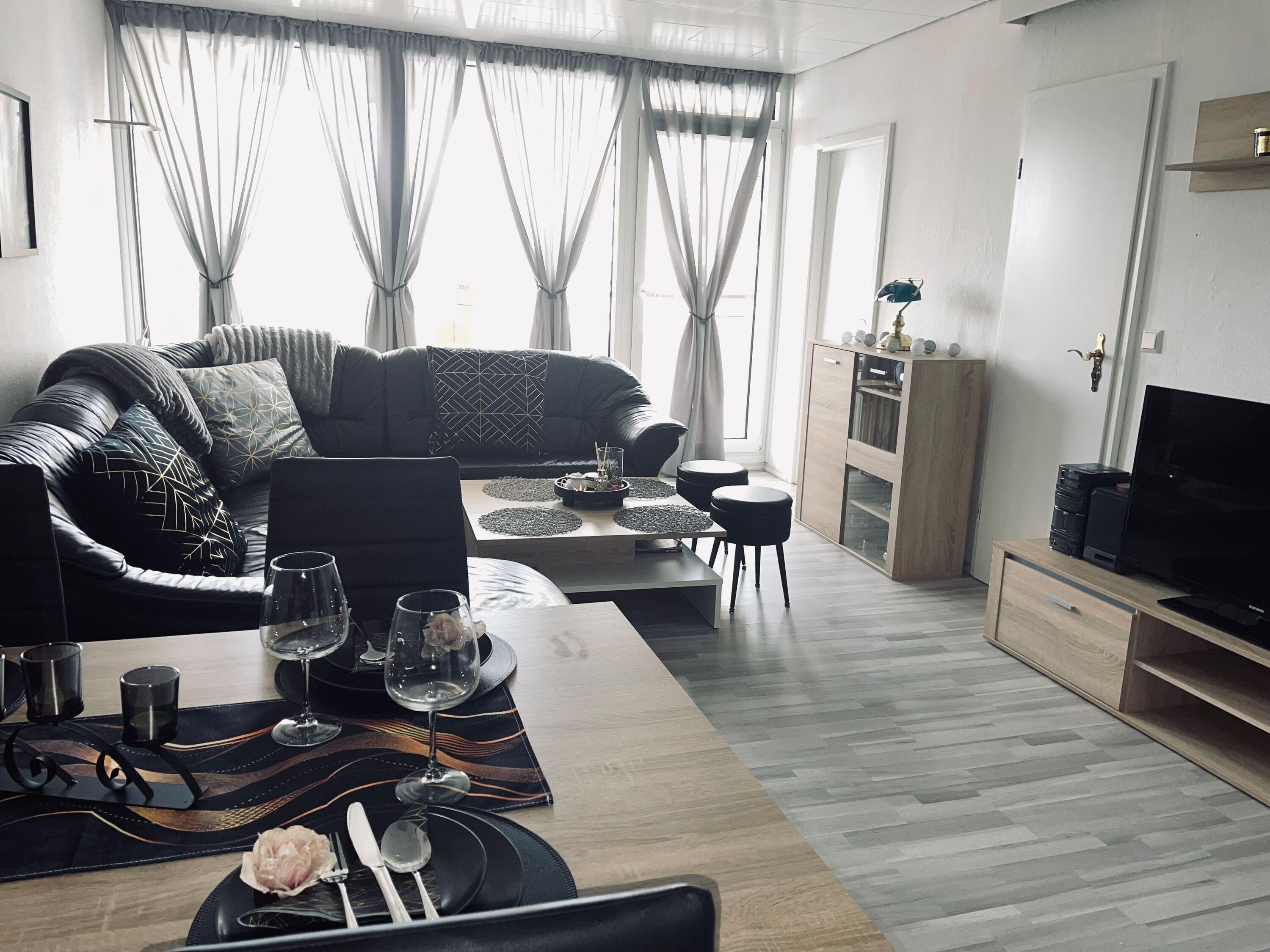Modern eingerichtete, Nichtraucher- Ferienwohnung mit einem Schlafraum mit Boxspringbett (1,80 x 2,00 m) und im zweiten Schlafraum ein französisches Bett (1,40x2,00m) für die weiteren Gäste.[nbsp] Essecke und Wohnraum mit gemütlicher Sitzecke. Die Wohnung ist mit allergikerfreundlichem Laminatboden im Wohnbereich ausgestattet. Modernisierte Küche und ein Wannenbad stehen zur Verfügung