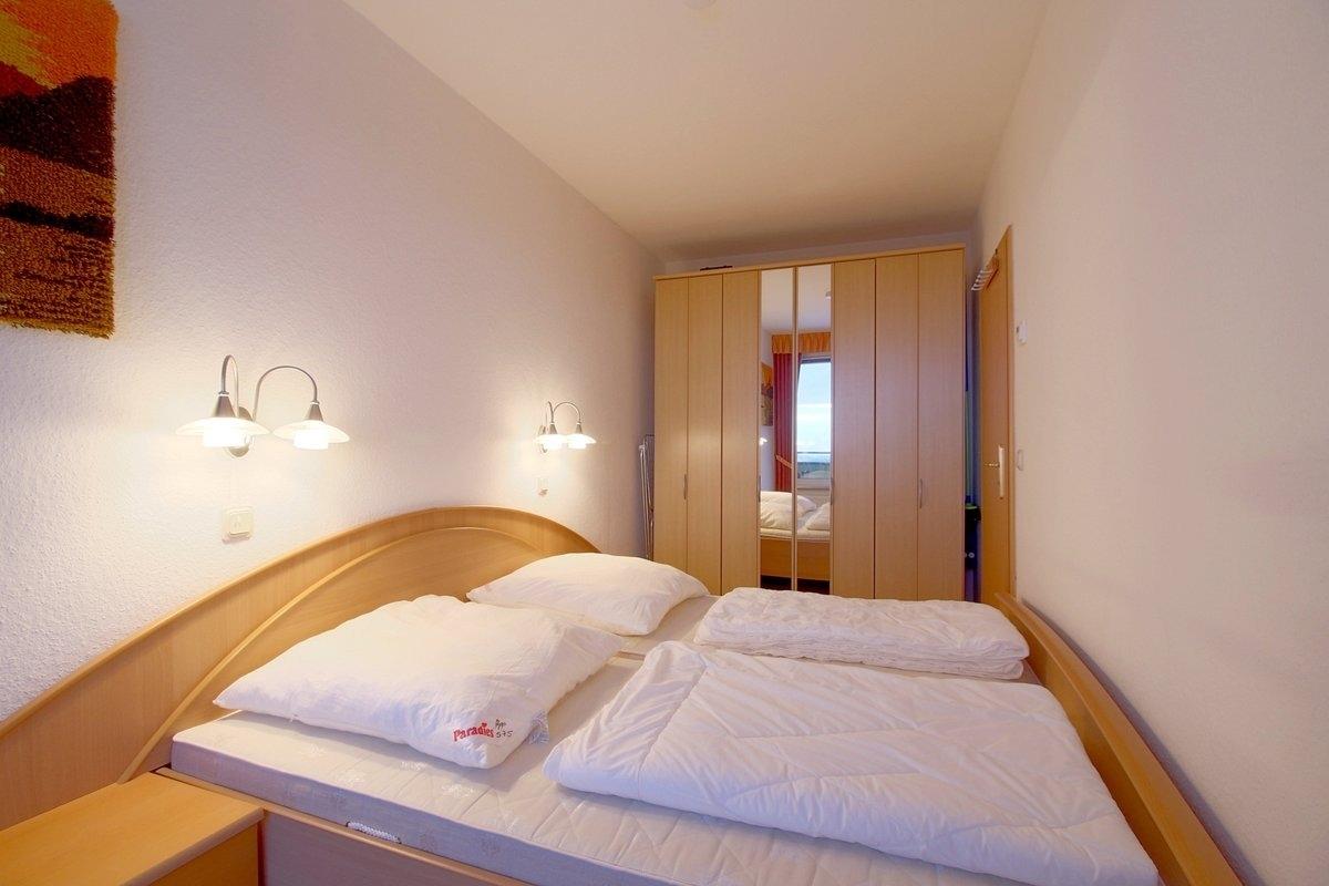 Modern eingerichtete Nichtraucher-Ferienwohnung mit einem Schlafraum mit Doppelbett (1,80 x 2,00 m) und Wohnraum mit Schlafcouch mit tollem Ausblick aus der 15. Etage.