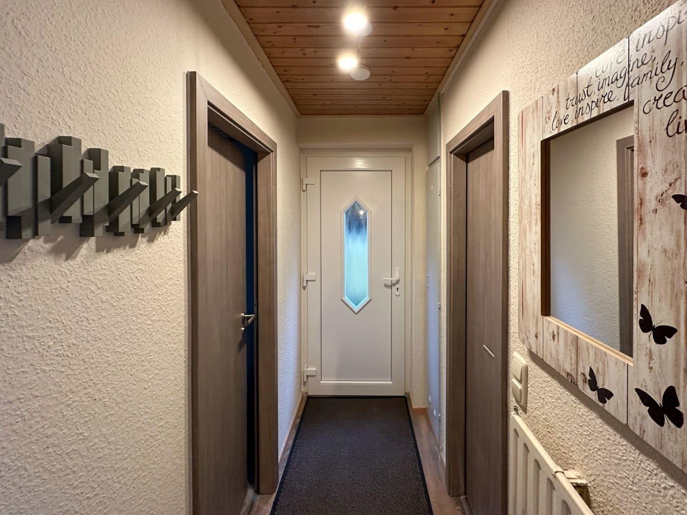 Die perfekt ausgestattete Nichtraucher Ferienwohnung verfügt über 2 Schlafzimmer (ein Doppelbett 1,80 m x 2,00 m und ein Etagenbett 0,90 m x 2,00 m) und einer modernen vollständig eingerichteten Küche.