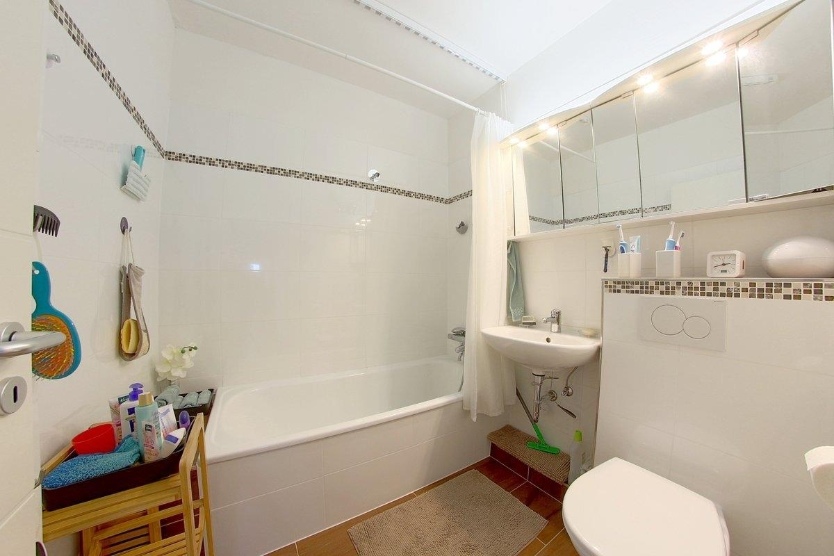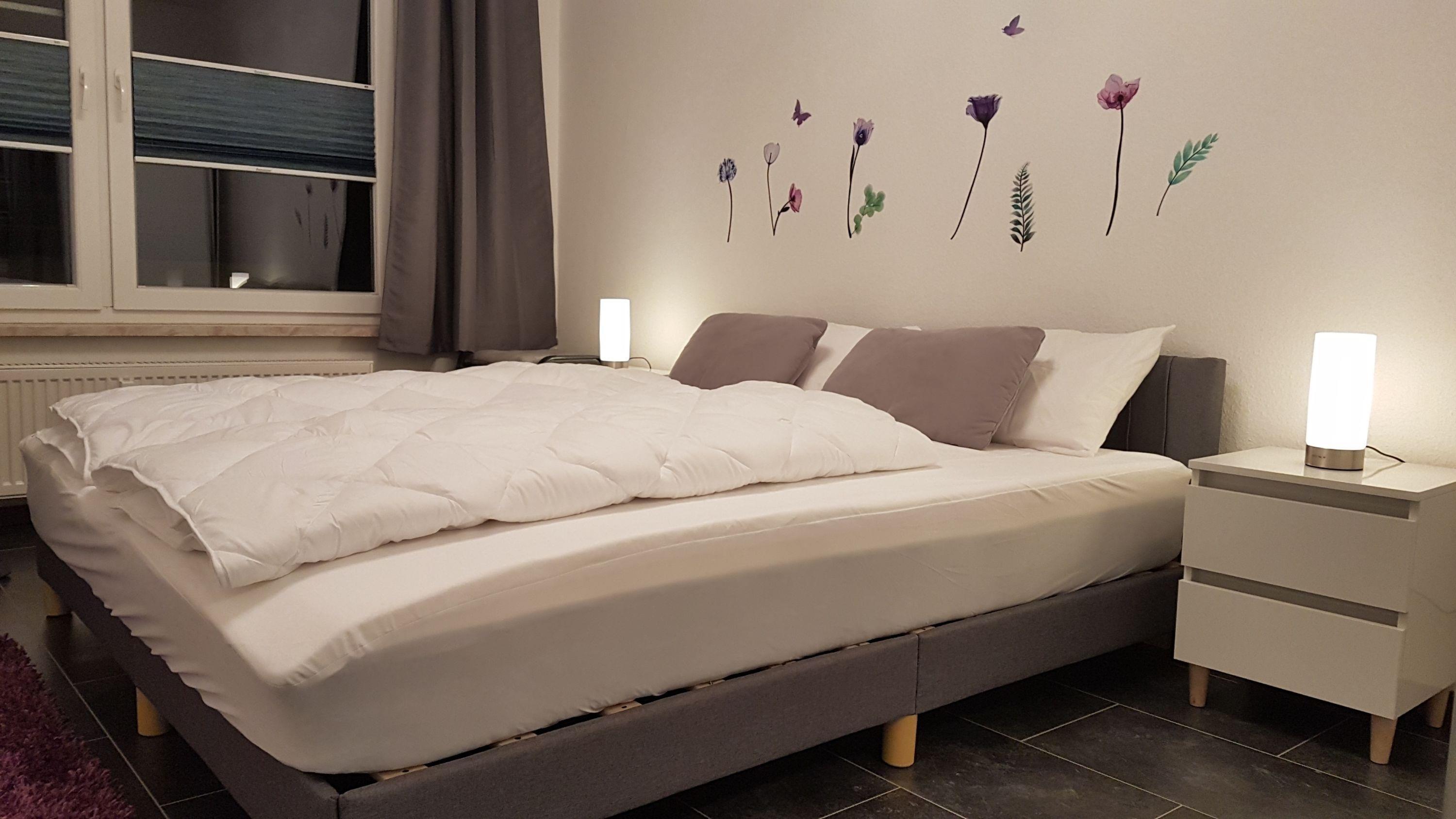 Ein hell gefliestes Duschbad mit WC[nbsp] gehört zur Ausstattung. Bettwäsche ist bei Anreise schon da, die Betten sind bezogen.