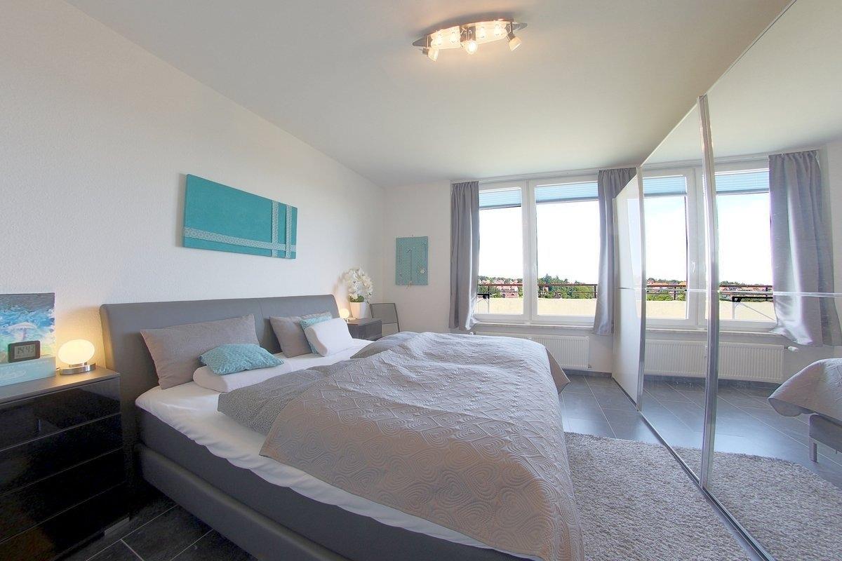 Hier können Sie mit der Familie Urlaub machen. Hochwertig eingerichtete Nichtraucher-Penthousewohnung mit zwei Schlafräumen mit Doppelbett (1,80 x 2,00 m).