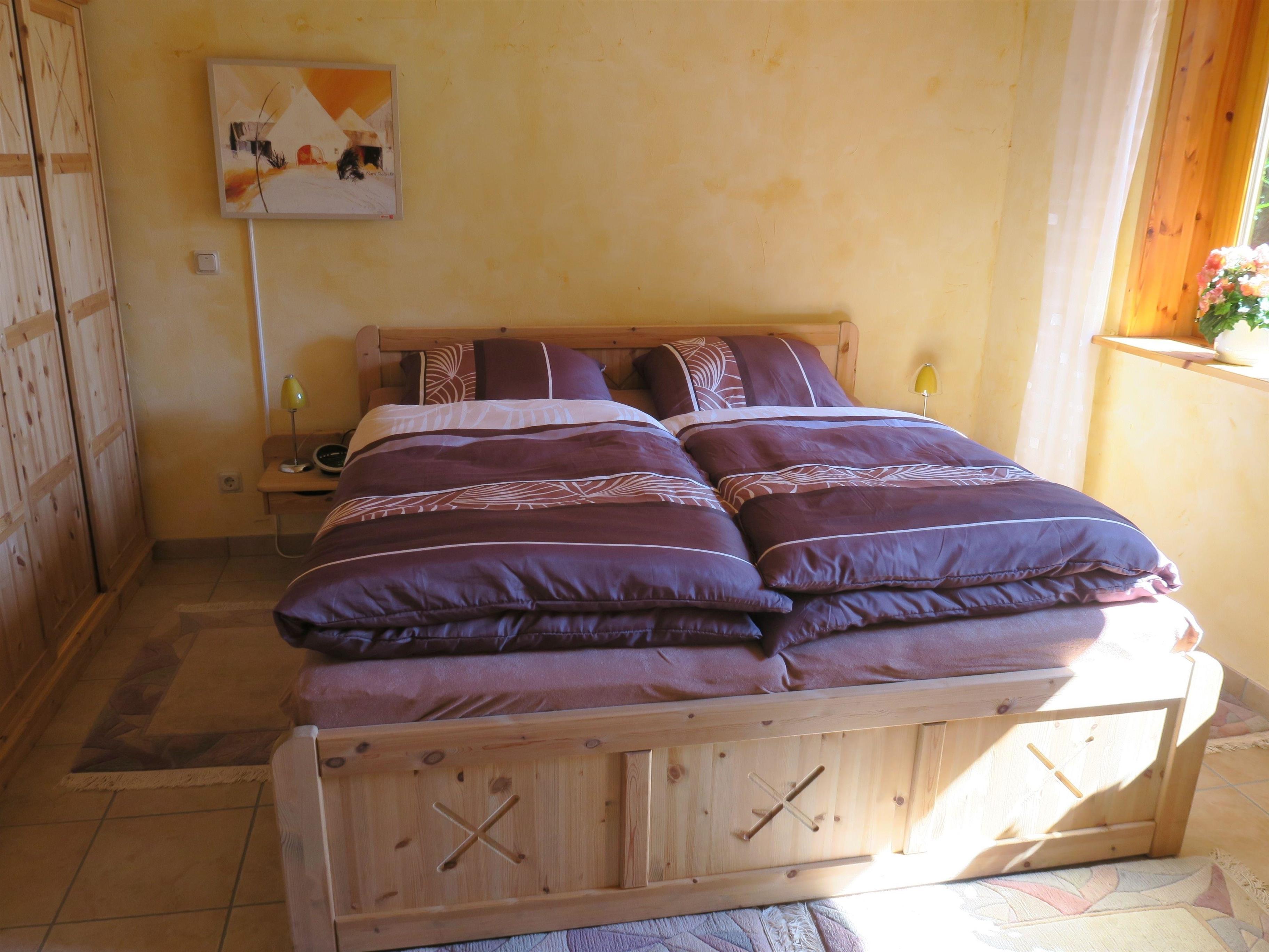 Das Schlafzimmer ist mit einem bequemen Doppelbett und einem großzügigen Kleiderschrank und einem Tresor ausgestattet.