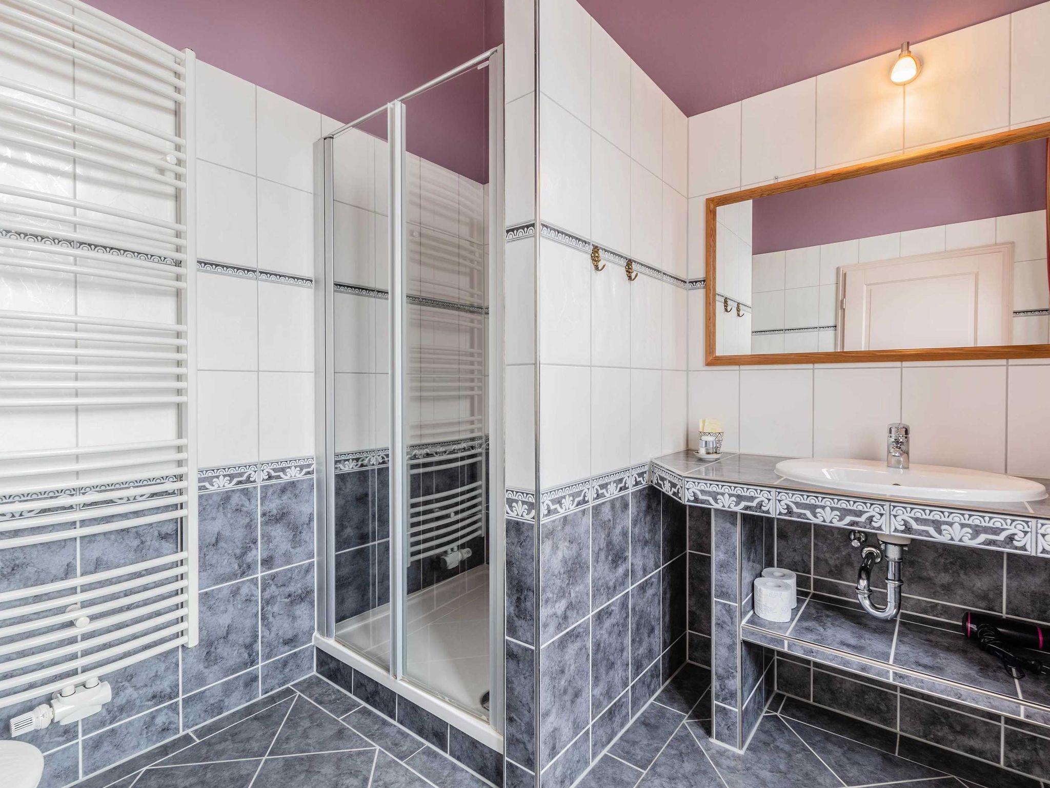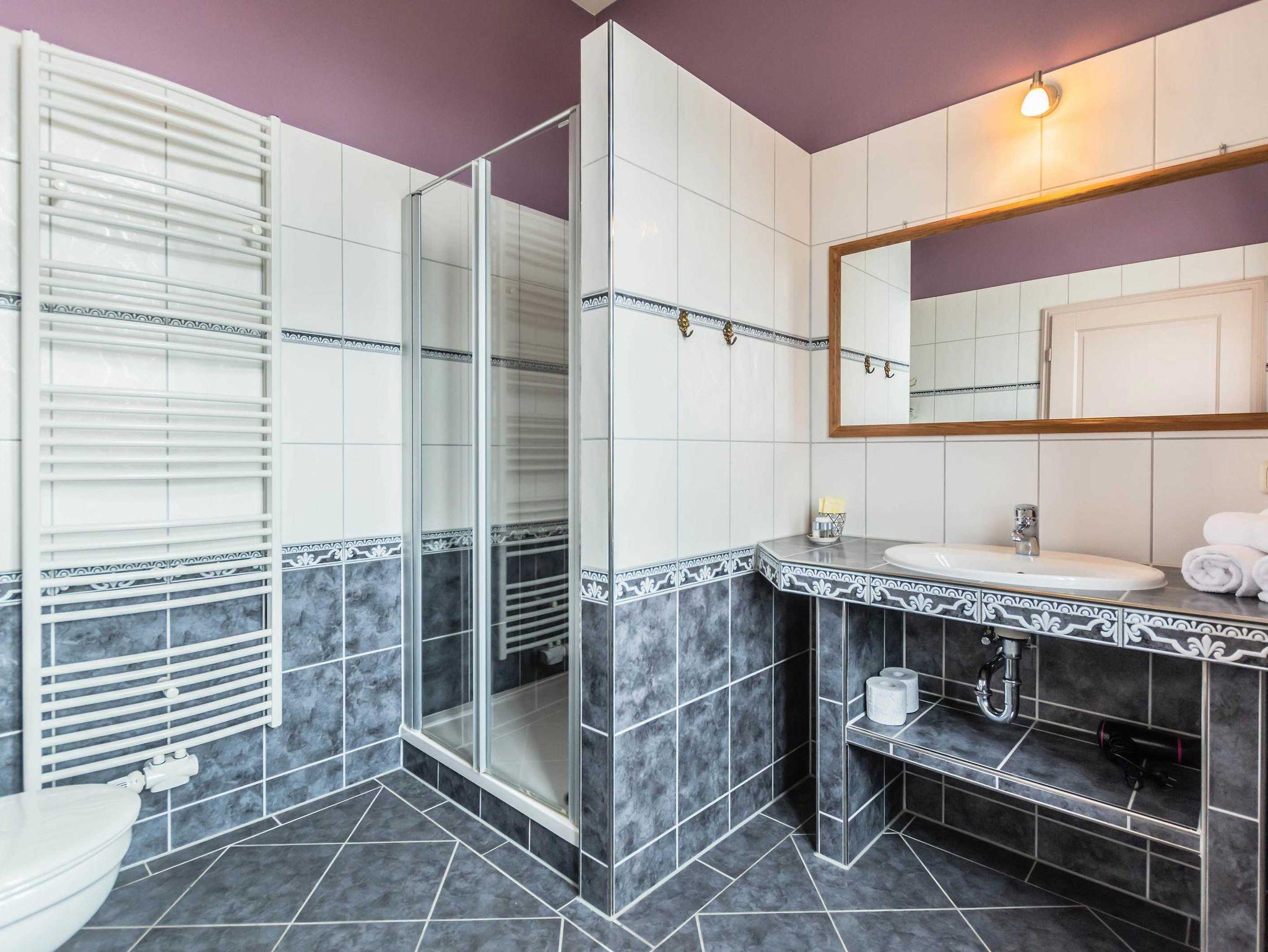 Auch das Badezimmer ist hell und geräumig, ausgestattet mit Dusche und WC.