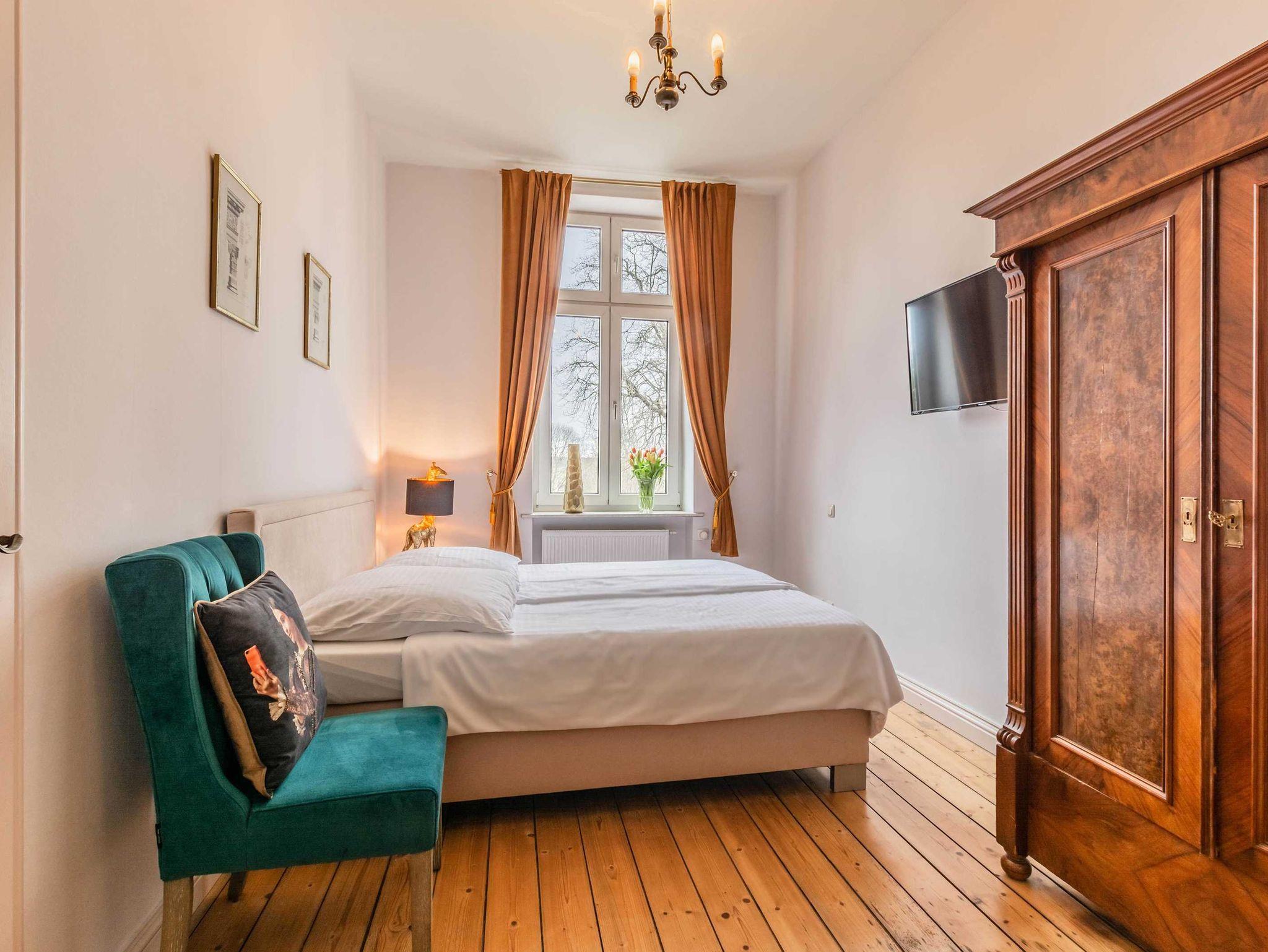 Die gemütlichen Doppelzimmer befinden sich in der ersten Etage unseres Gutsschlosses. Sie sind mit 1,40m bis 1,80m breiten Betten und einer kleinen Sitzecke ausgestattet.