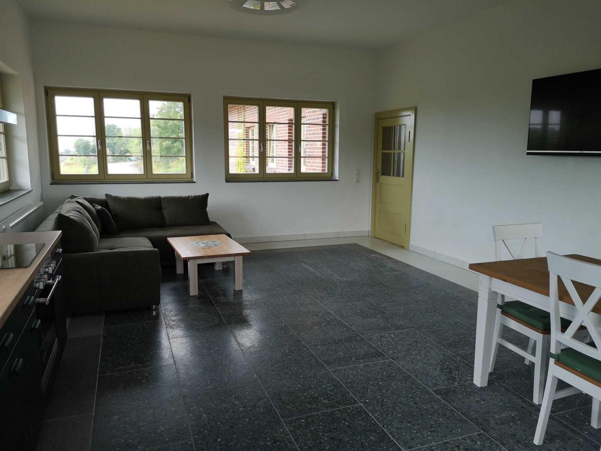 Die Ferienwohnung befindet sich im Erdgeschoss des Hauses. Das Wohnzimmer verfügt über eine Schlafcouch (1,50 x 2,00 m Liegefläche) zur Aufbettung. Das Schlafzimmer ist mit einem Doppelbett ausgestattet. Für Kinder bis zu 3 Jahren werden nach Verfügbarkeit ein Reise- Kinderbett und ein Hochstuhl angeboten. Bitte kontaktieren Sie bei Bedarf im Vorfeld den Gastgeber und stimmen Sie sich ab. Die Ferienwohnung verfügt über ein Badezimmer mit Dusche und WC. Die Küche ist mit Herd/Backofen und Geschirrspüler ausgestattet.
