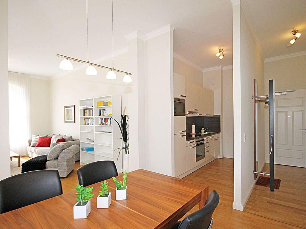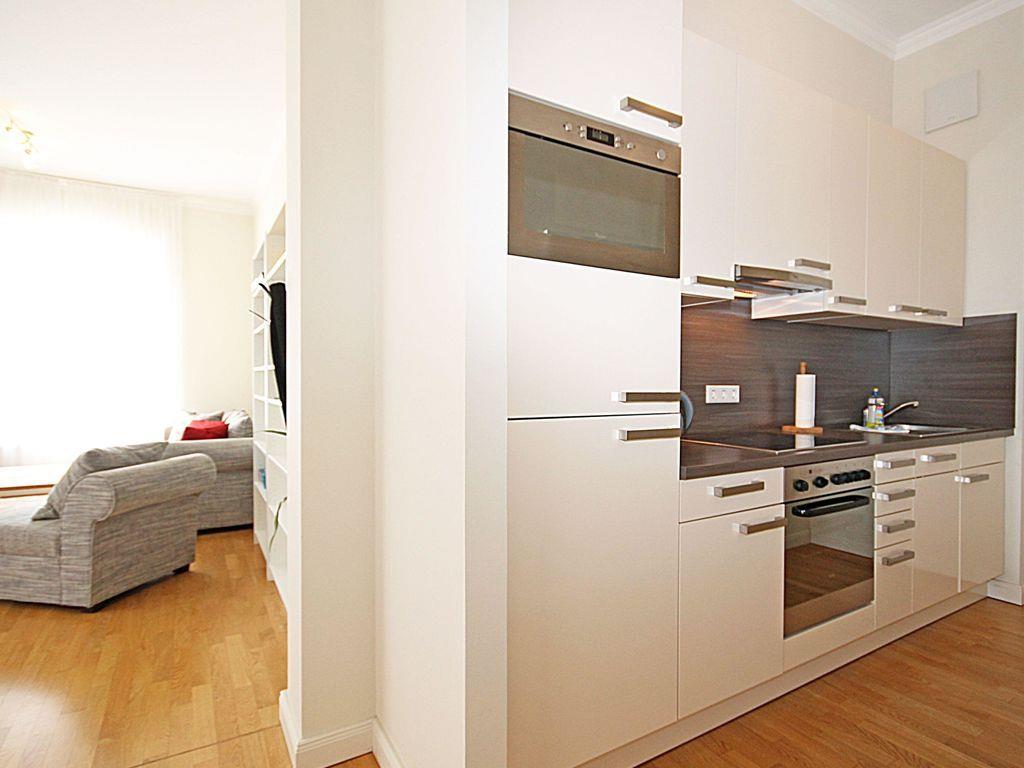 Die komfortable und geräumige 2-Zimmer-Wohnung (ca. 61 m²) im 1. Obergeschoss (Beletage) besitzt ein hohes Maß an Funktionalität und ist komplett eingerichtet. Der Bodenbelag in der gesamten Wohnung ist hochwertiges Eichen-Parkett, das Bad / WC ist gefliest. Alle Räume sind mit Fußbodenheizung ausgestattet.