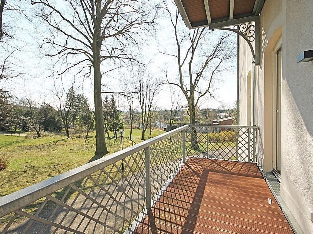 Das großzügige und lichtdurchflutete Wohn-/Esszimmer verfügt über eine separate Sitzgruppe mit bequemer (Schlaf-)Couch, Sessel, Couchtisch, einen separaten Esstisch mit 4 Stühlen, ein Sideboard mit Vitrine sowie eine Regalwand. Vom Esszimmer aus haben Sie direkten Zugang zu dem ca. 10 m² großen Balkon (nach Süd-Osten ausgerichtet) mit Balkonmöbeln. Hier sitzen Sie entspannt und gemütlich mit herrlichem Blick in den Schloßpark und können abends bei einem guten Glas Wein in Ruhe die lauen Sommernächte genießen!