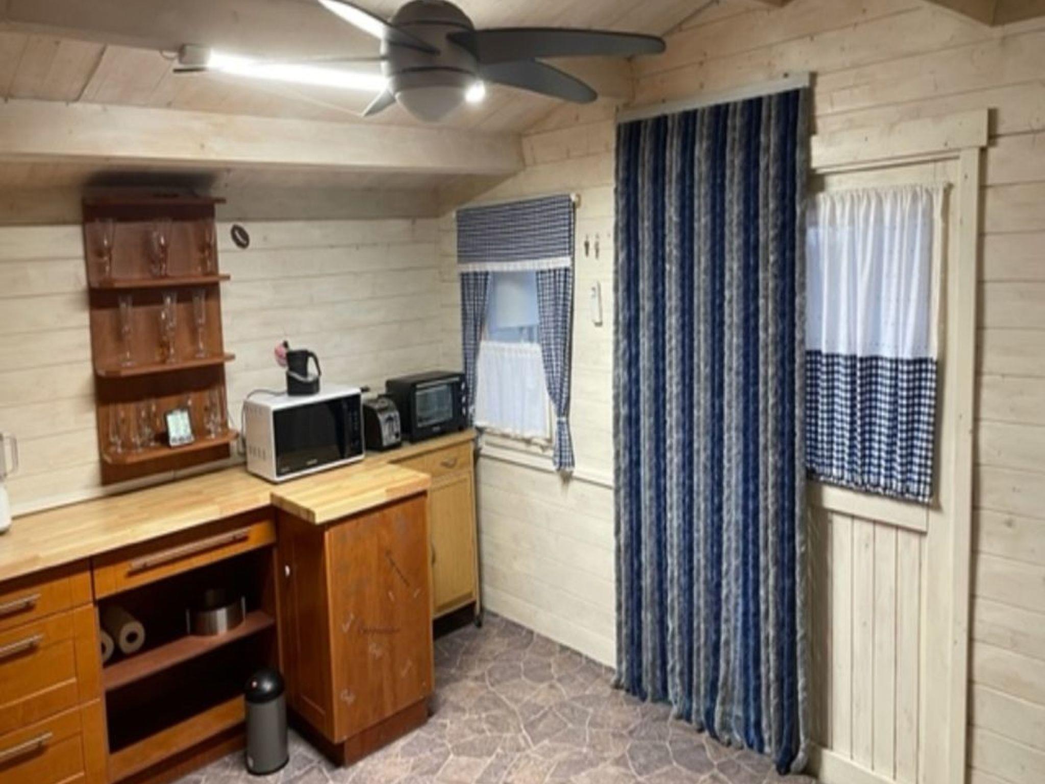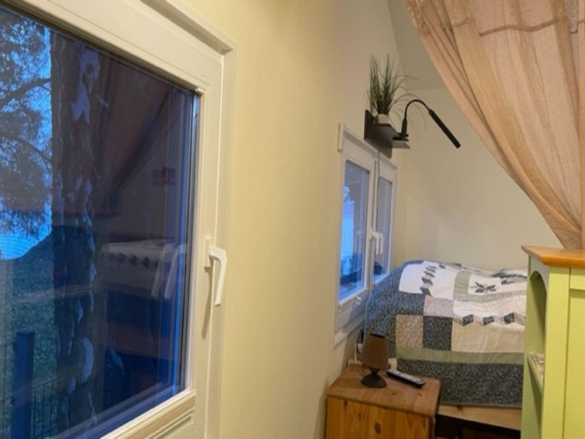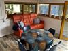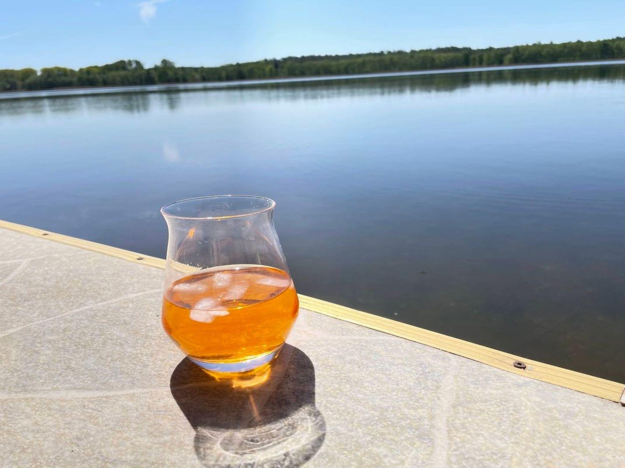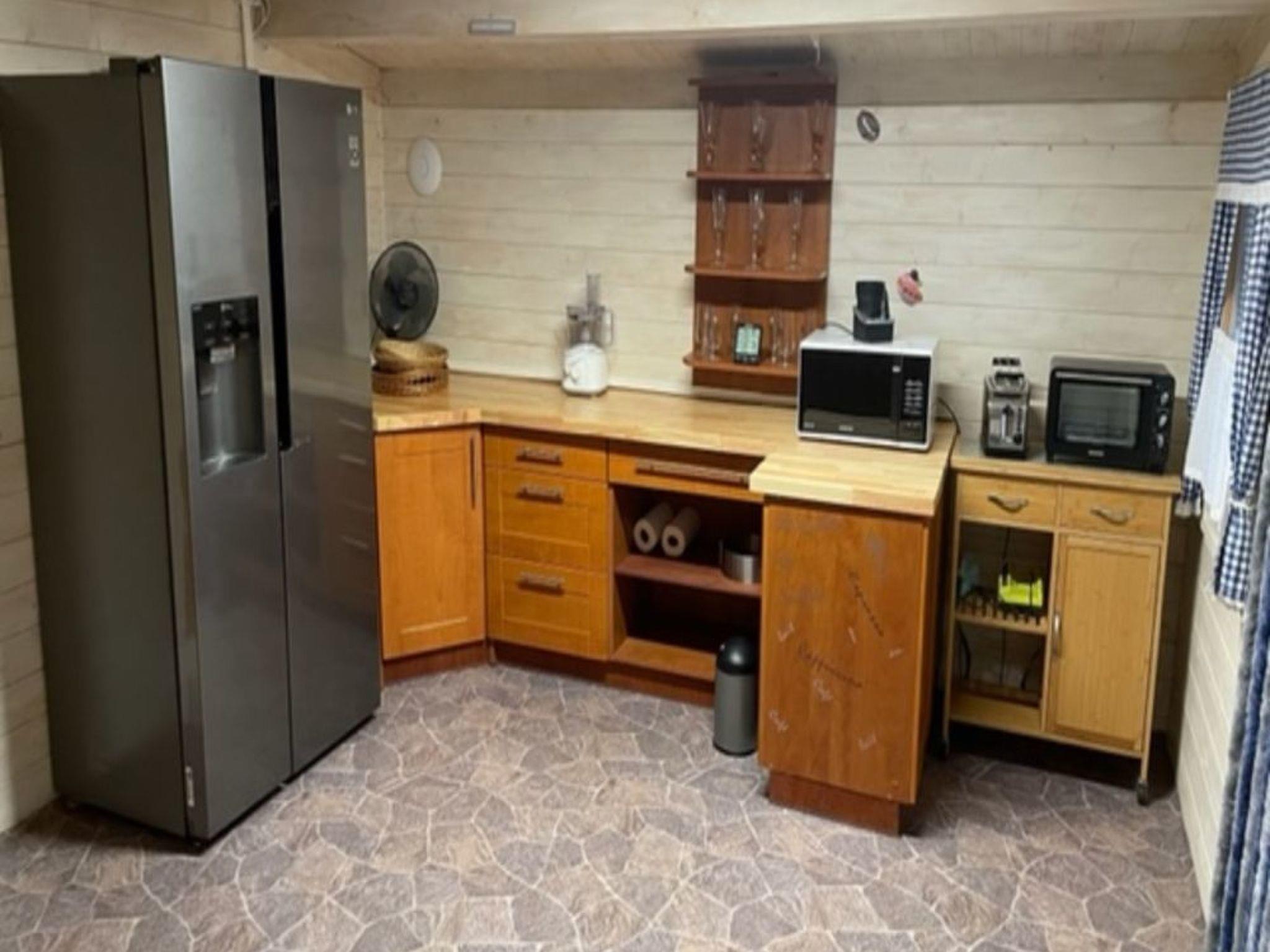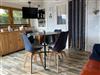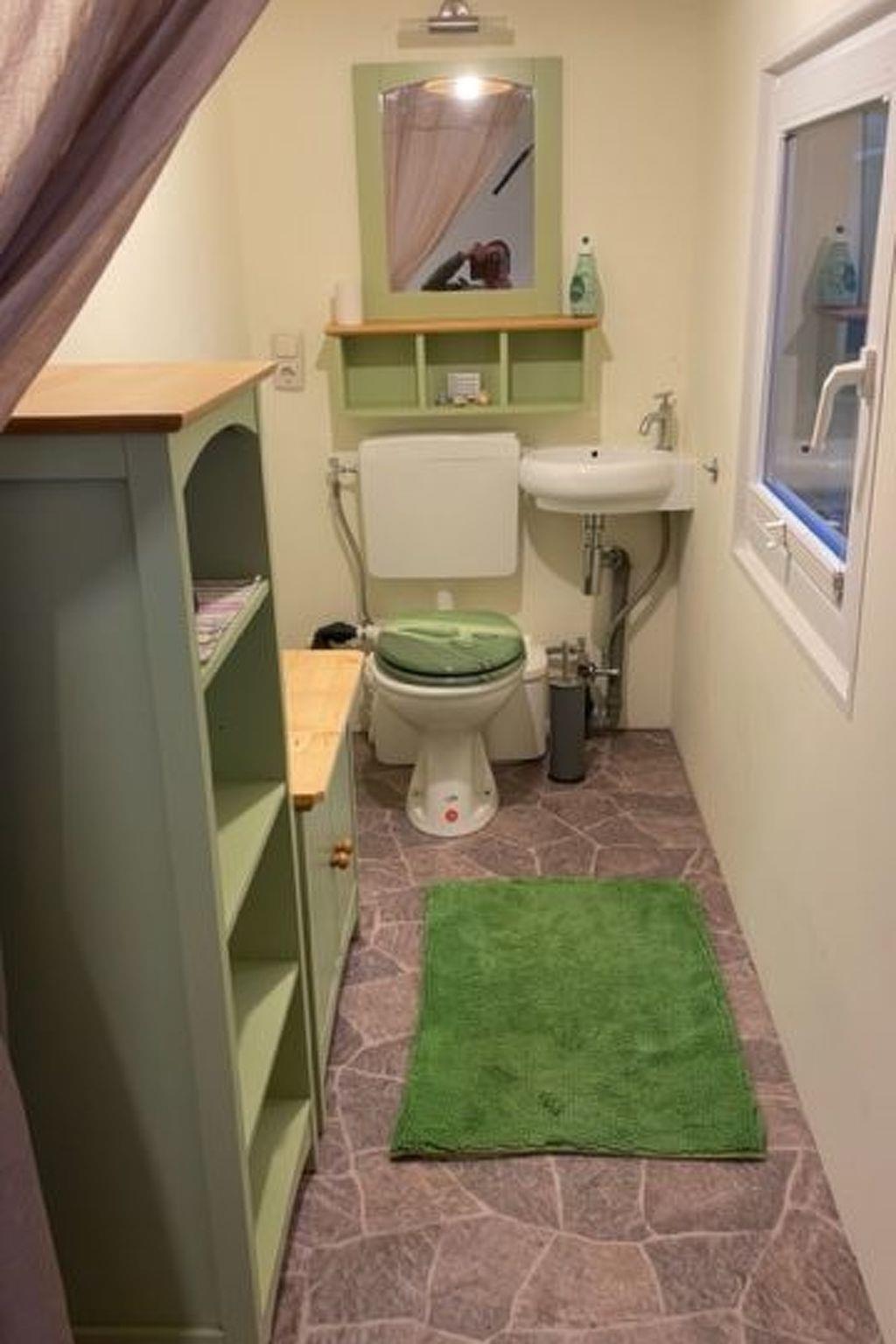 The 60 m² house, for two people, was built in 2020. It has one floor and is bright and friendly furnished. The cosy living/dining room with sofa, dining area, fully automatic coffee machine and TV is located directly in the entrance area and offers a fantastic view of the lake. The same applies to the small kitchen, which is equipped with an induction hob and dishwasher. The shower room is located in the outbuilding, with toilet and washbasin. The bedroom is located just behind the indoor kitchen with a large fridge, kettle, small oven and toaster, and there is a large double bed in the bedroom. Here you can enjoy the TV programme in bed when the weather is bad. Adjacent to the bedroom is the en suite bathroom with toilet and small washbasin. There are infrared radiators in the bedrooms.