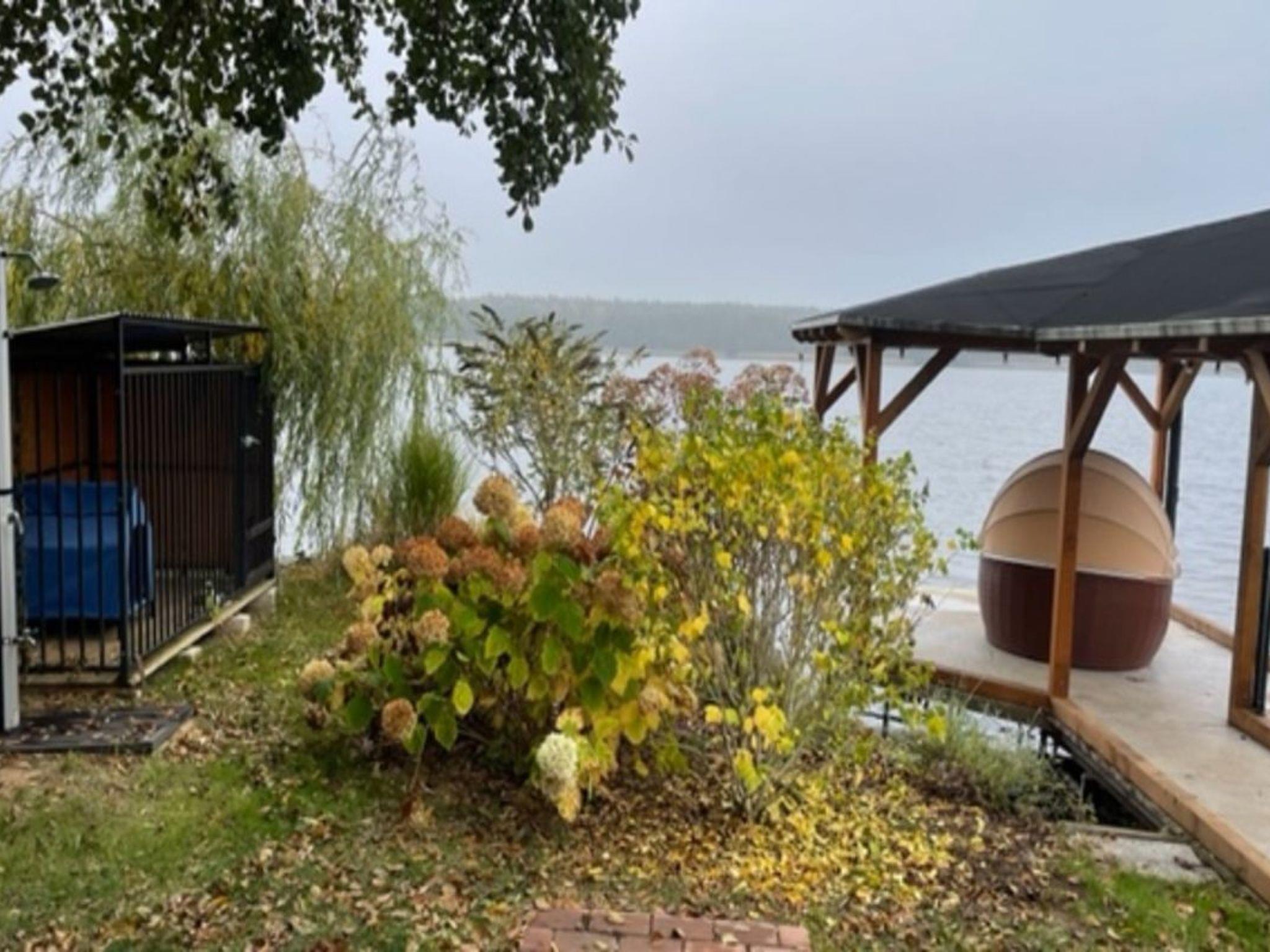 The terrace is equipped with garden furniture and invites you to relax on the covered jetty all day long. Lake. A rowing boat also belongs to the cottage.