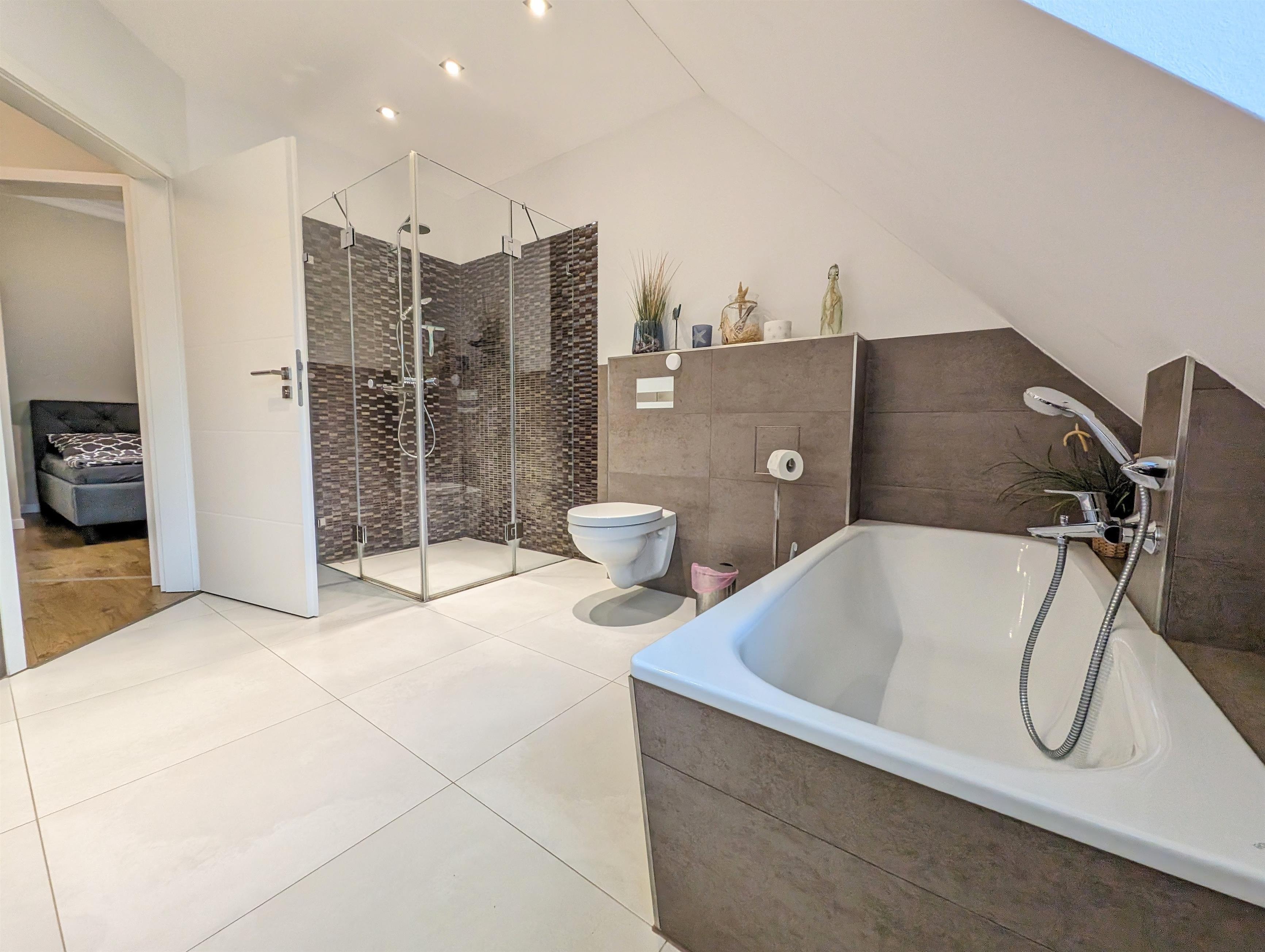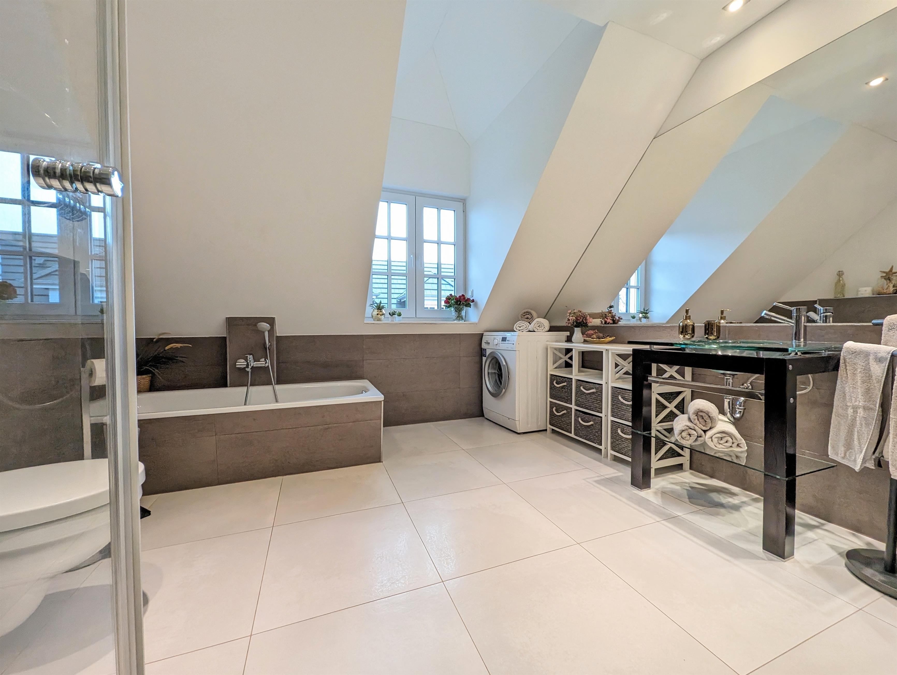 Badeværelse med bruser og badekar