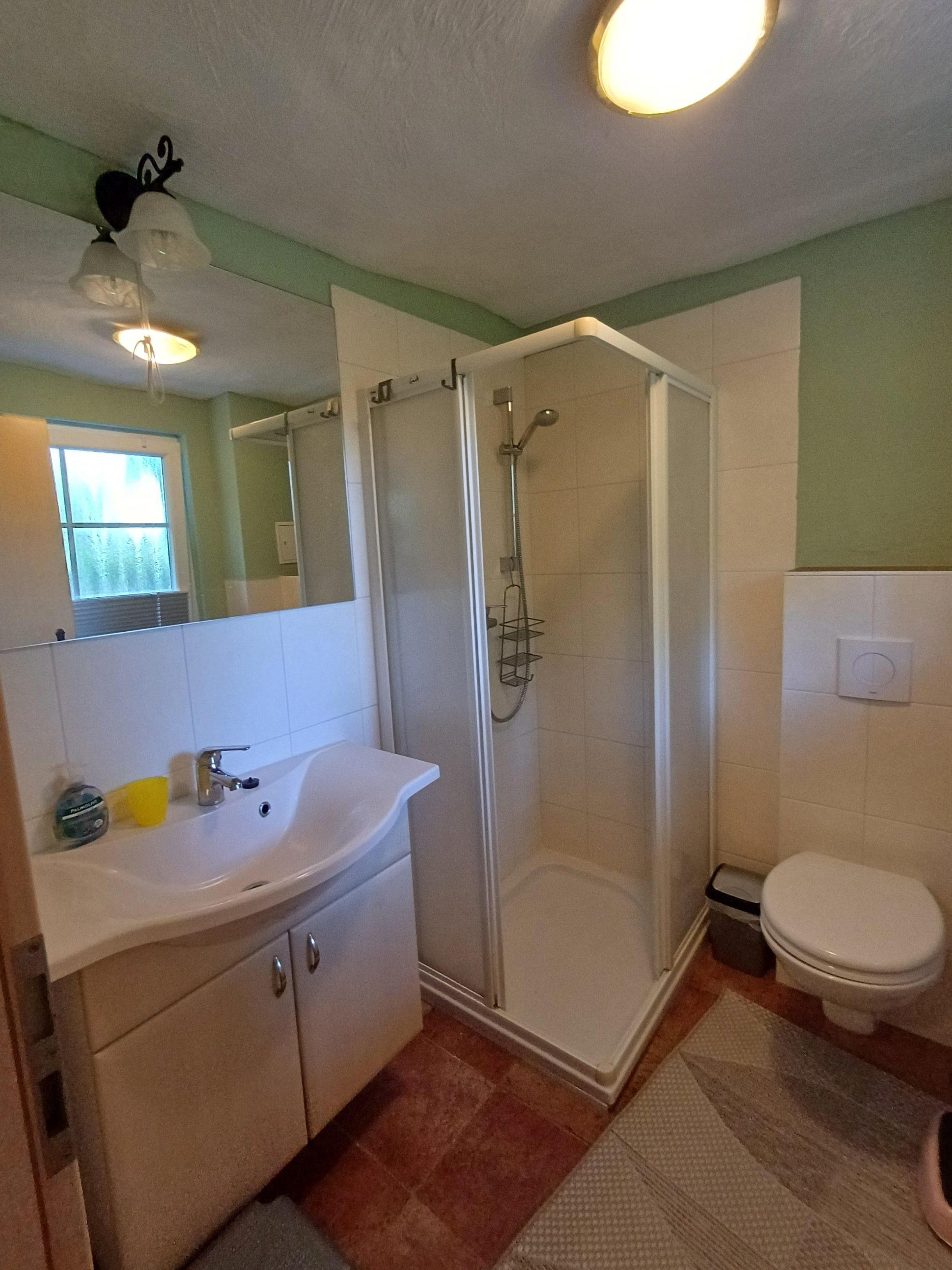 Die 30 qm Ferienwohnung befindet sich im Haupthaus und hat einen eigenem Eingang .